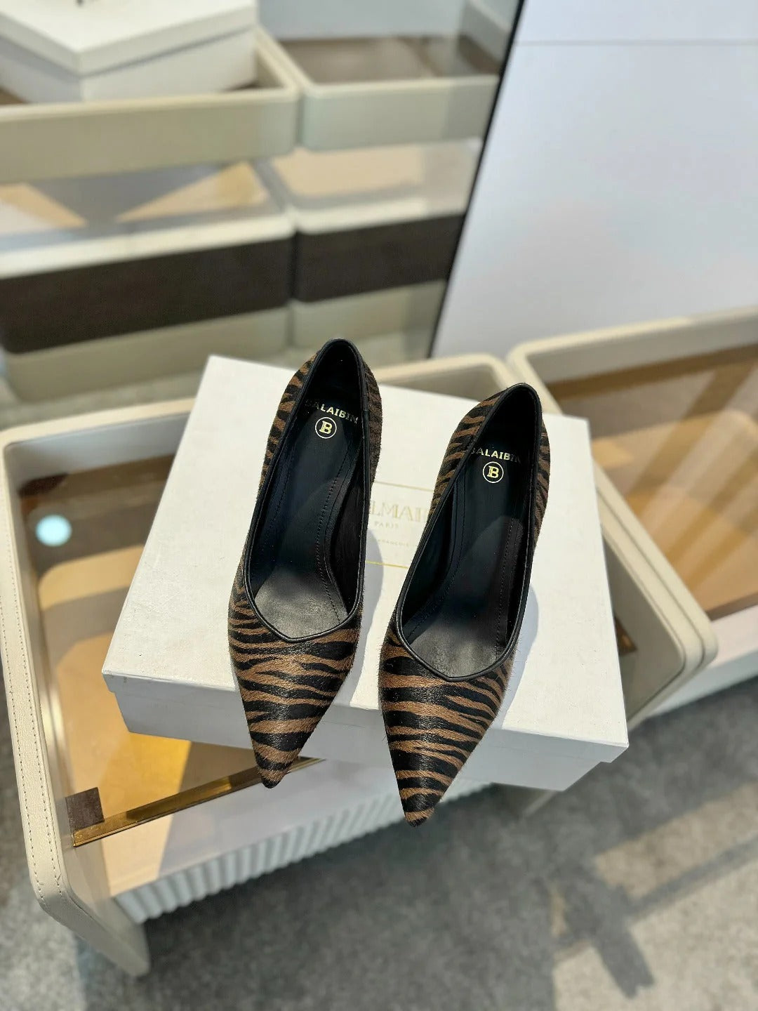 BALMAIN 25S HIGH HEELS 95MM IN BROWN AND BLACK ZEBRA PRINT CALFSKIN