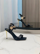 BALMAIN 25S HIGH HEELS WITH B METAL DETAIL 95MM IN BLACK CALFSKIN