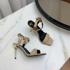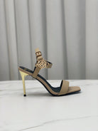 BALMAIN 25S HIGH HEELS WITH B METAL DETAIL 95MM IN LIGHT BROWN CALFSKIN