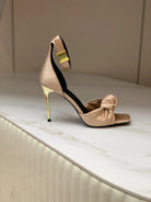 BALMAIN 25S KNOTTED HIGH HEELS 95MM IN LIGHT CARAMEL SATIN