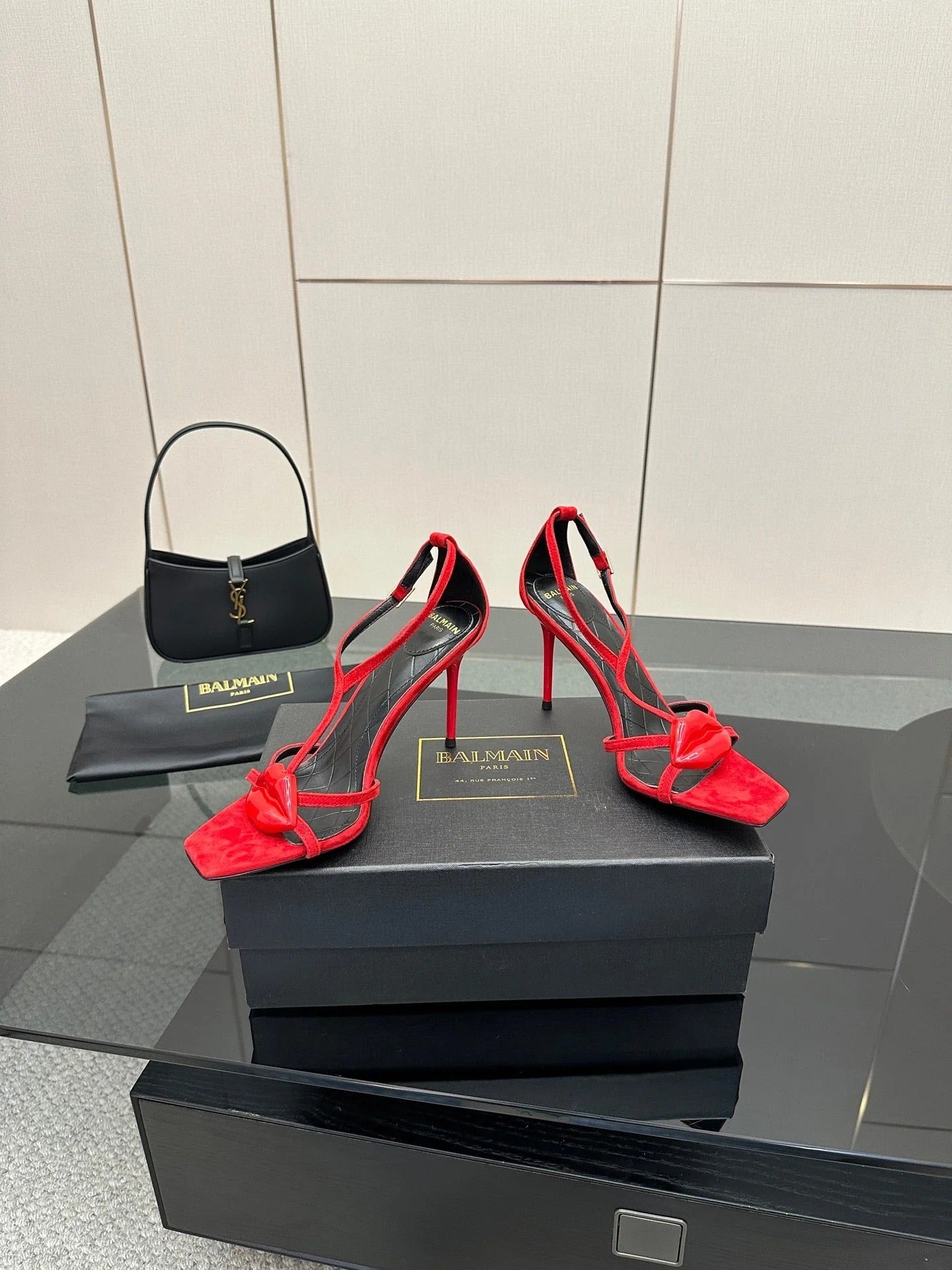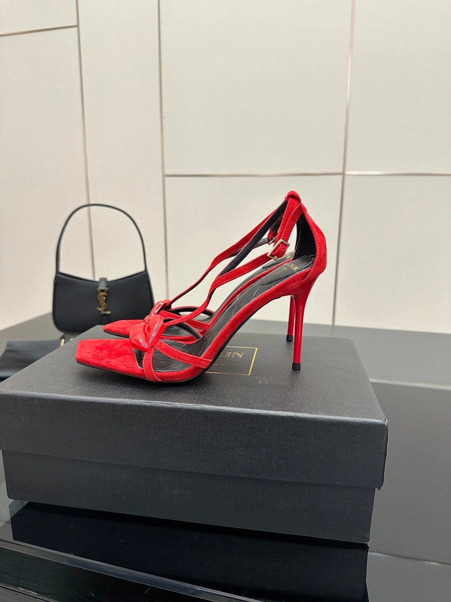 BALMAIN 25S LIPS SANDALS 10 IN CRIMSON RED SUEDE