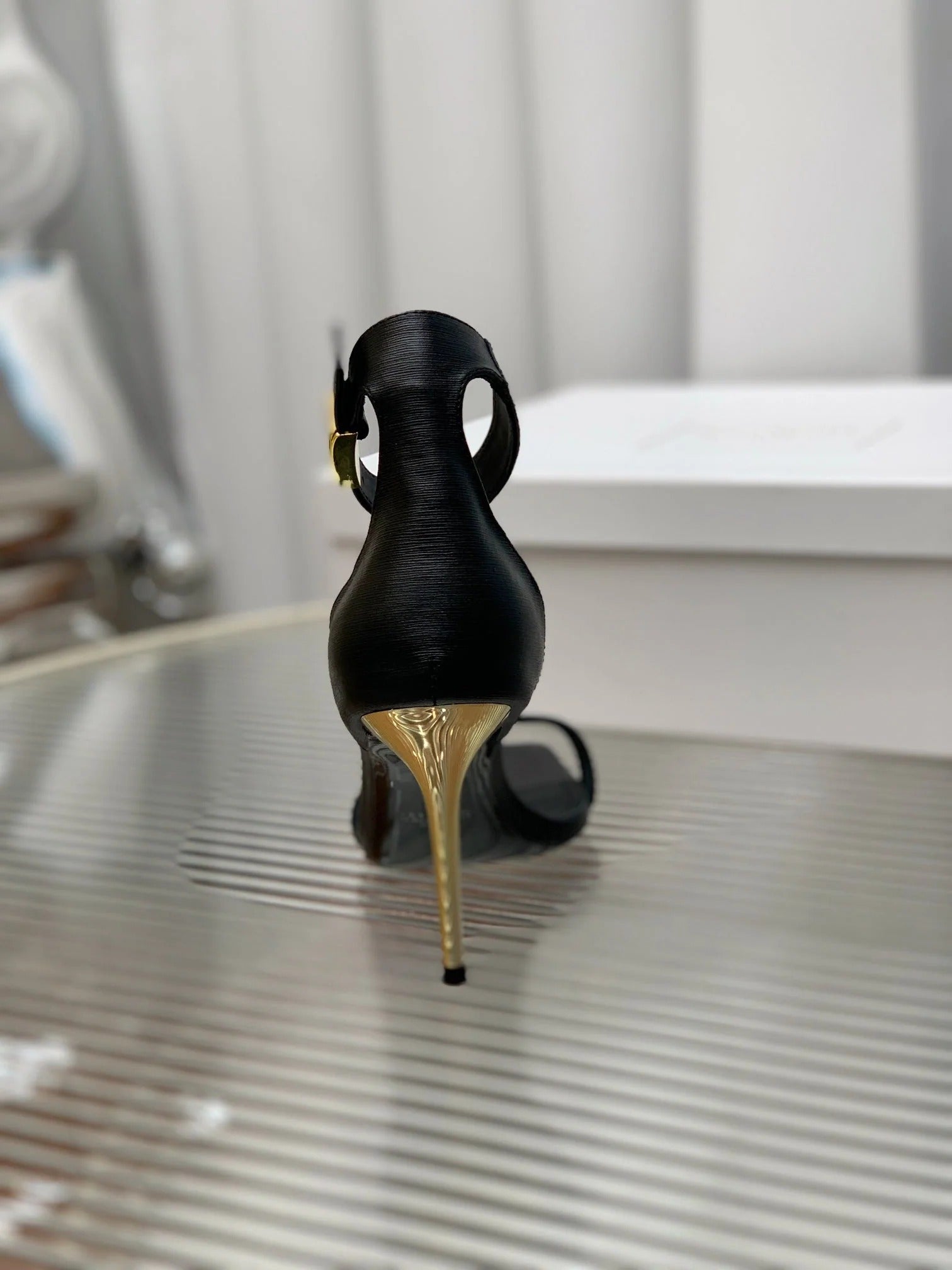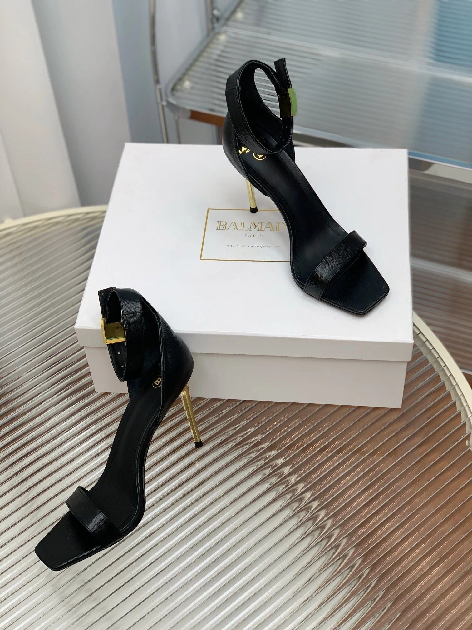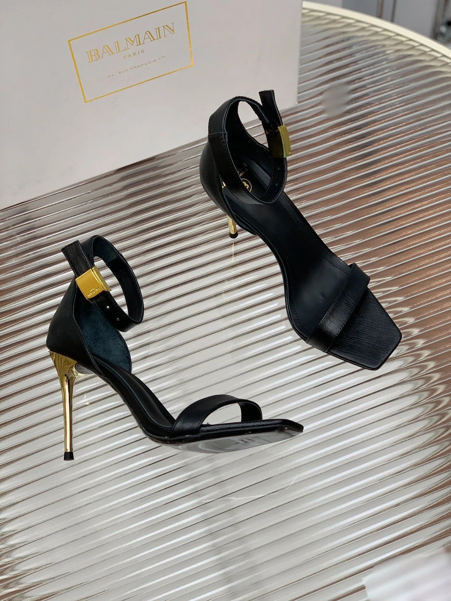 BALMAIN 25S METAL BUCKLE HIGH HEELS 95MM IN BLACK CALFSKIN