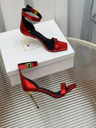 BALMAIN 25S METAL BUCKLE HIGH HEELS 95MM IN CHERRY RED CALFSKIN