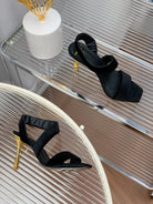 BALMAIN 25S MONETA HEELED SANDALS 95MM IN BLACK VELVET
