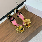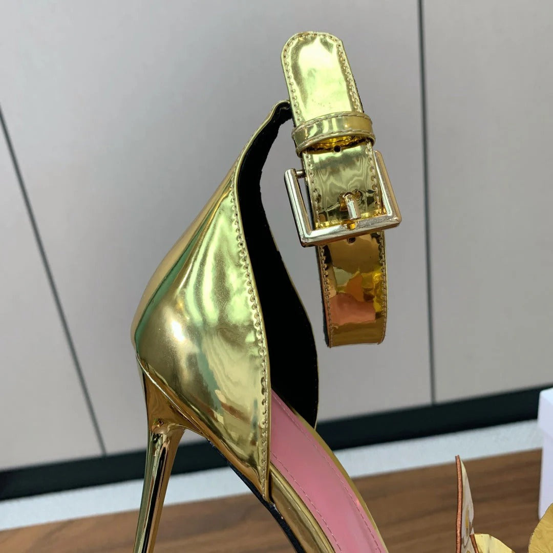 BALMAIN 25S RUBY GOLD HEELED SANDALS 95MM IN PATENT CALFSKIN