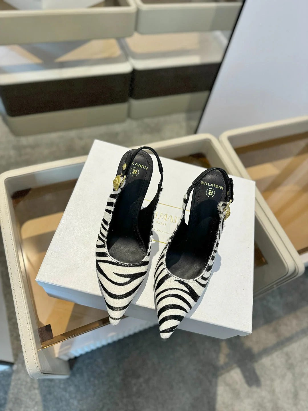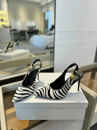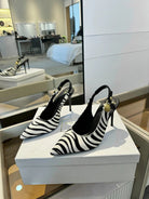 BALMAIN 25S SLINGBACK EVA 95MM IN WHITE AND BLACK ZEBRA PRINT CALFSKIN