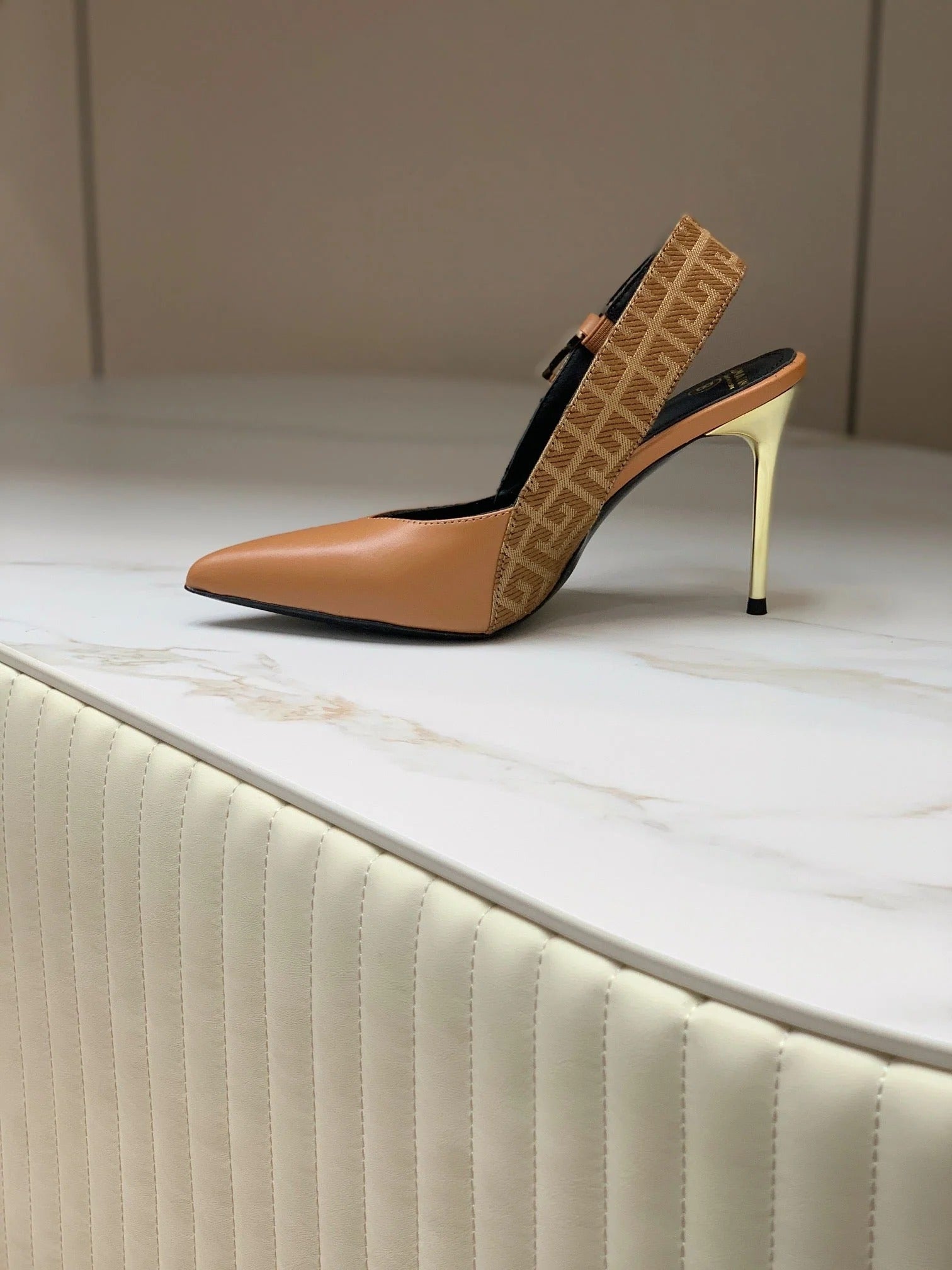 BALMAIN 25S SLINGBACK SHOES 95MM IN DARK BROWN CALFSKIN