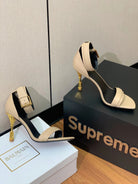 BALMAIN 25S SQUARE STRAP HIGH HEELS 100MM IN BEIGE GRAY CALFSKIN