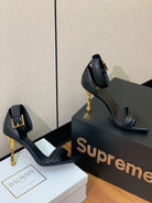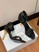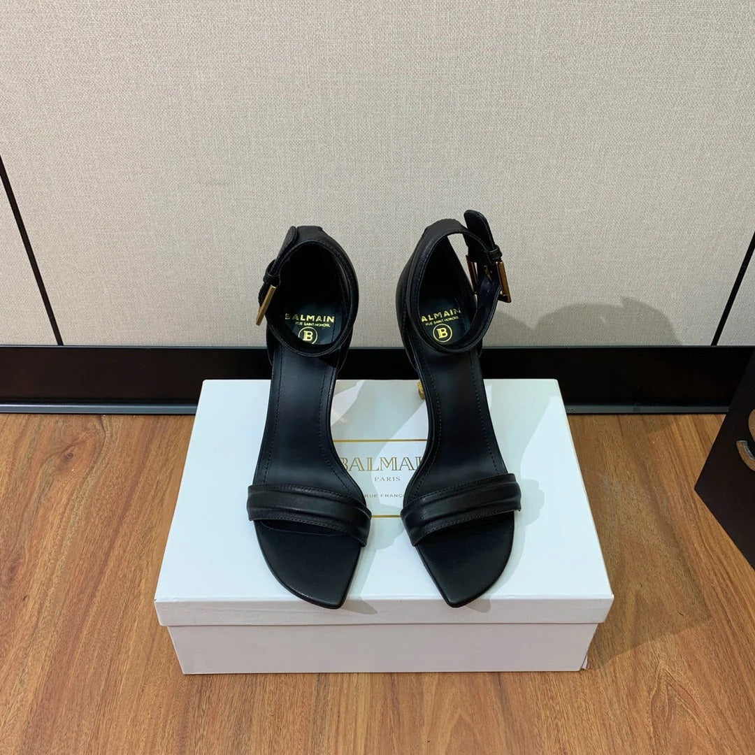 BALMAIN 25S SQUARE STRAP HIGH HEELS 100MM IN BLACK CALFSKIN