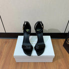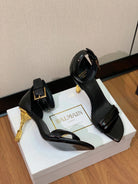 BALMAIN 25S SQUARE STRAP HIGH HEELS 100MM IN BLACK PATENT CALFSKIN