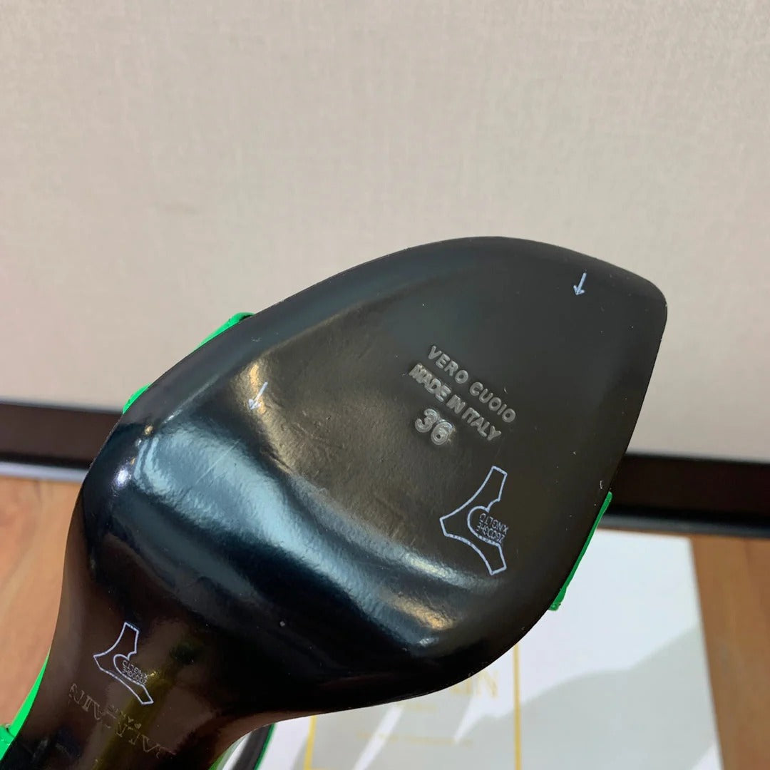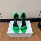 BALMAIN 25S SQUARE STRAP HIGH HEELS 100MM IN GREEN PATENT CALFSKIN