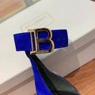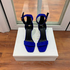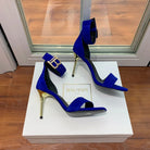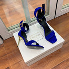 BALMAIN 25S THIN STRAP HIGH HEELS 105MM IN DARK BLUE SUEDE GOLD HARDWARE