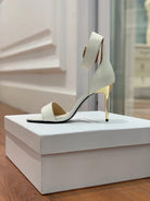 BALMAIN 25S THIN STRAP HIGH HEELS 105MM IN IVORY CALFSKIN GOLD HARDWARE