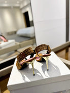 RUBY SANDALS IN BROWN CALFSKIN AND PB LABYRINTH CANVAS
