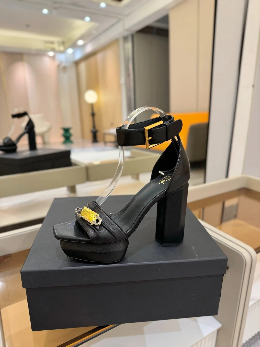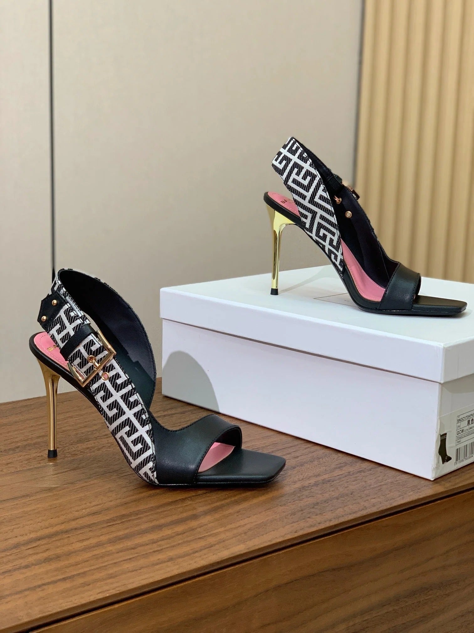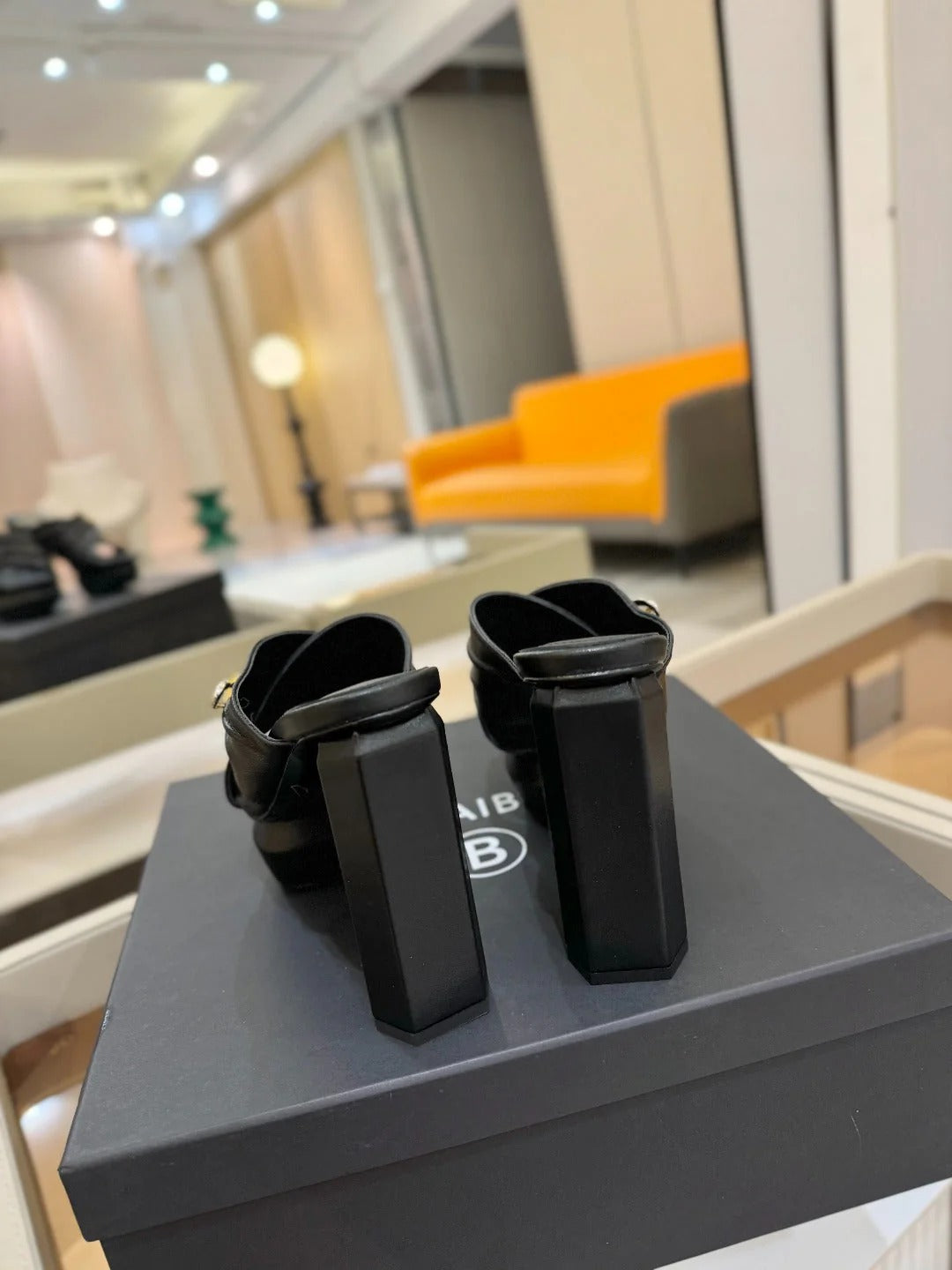 BALMAIN 25S SQUARE STRAP HIGH HEELS 100MM IN BLACK CALFSKIN