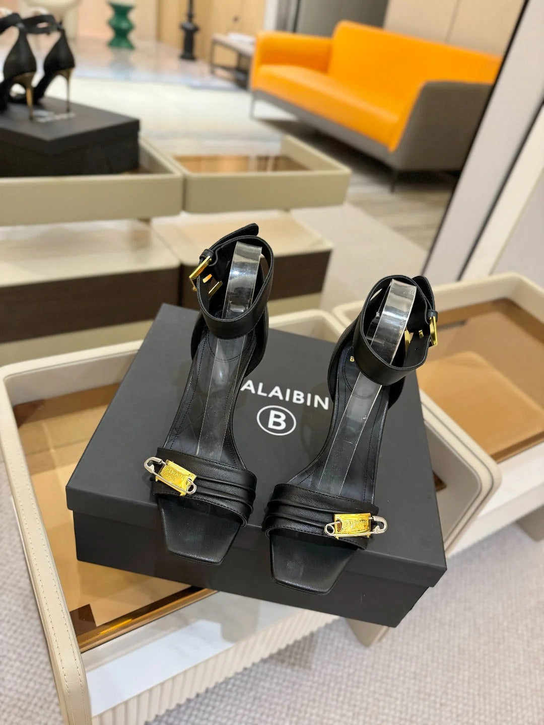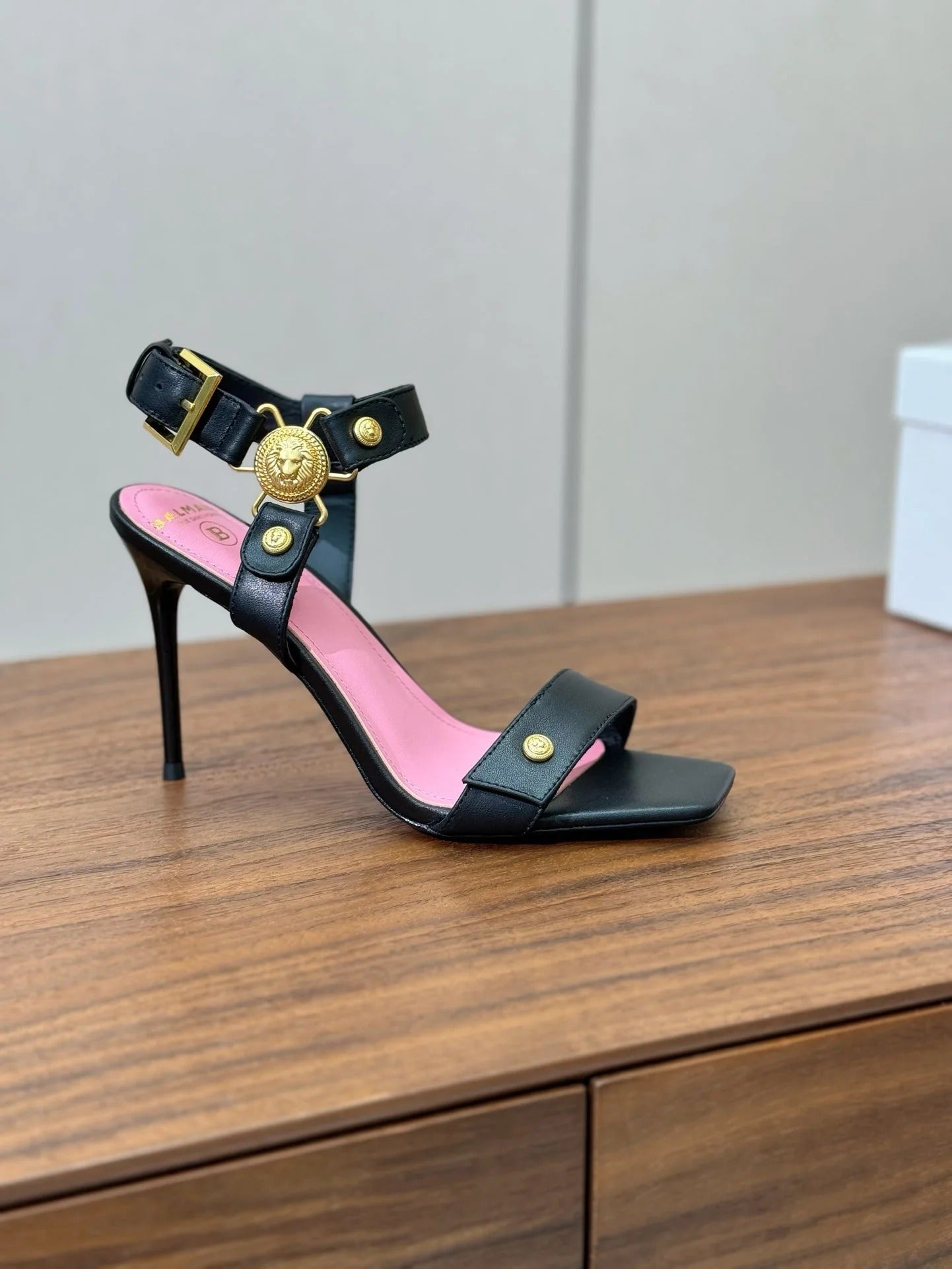 BALMAIN 25S ANKLE STRAP HIGH HEEL 95MM IN BLACK CALFSKIN