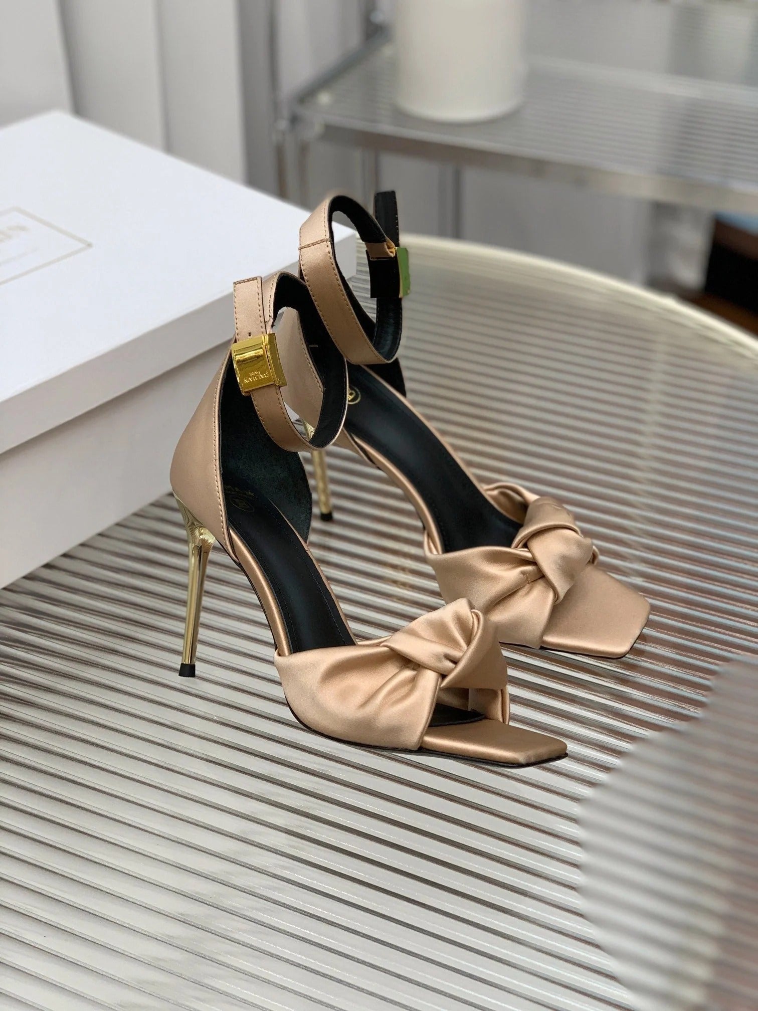 BALMAIN 25S KNOTTED HIGH HEELS 95MM IN LIGHT CARAMEL SATIN