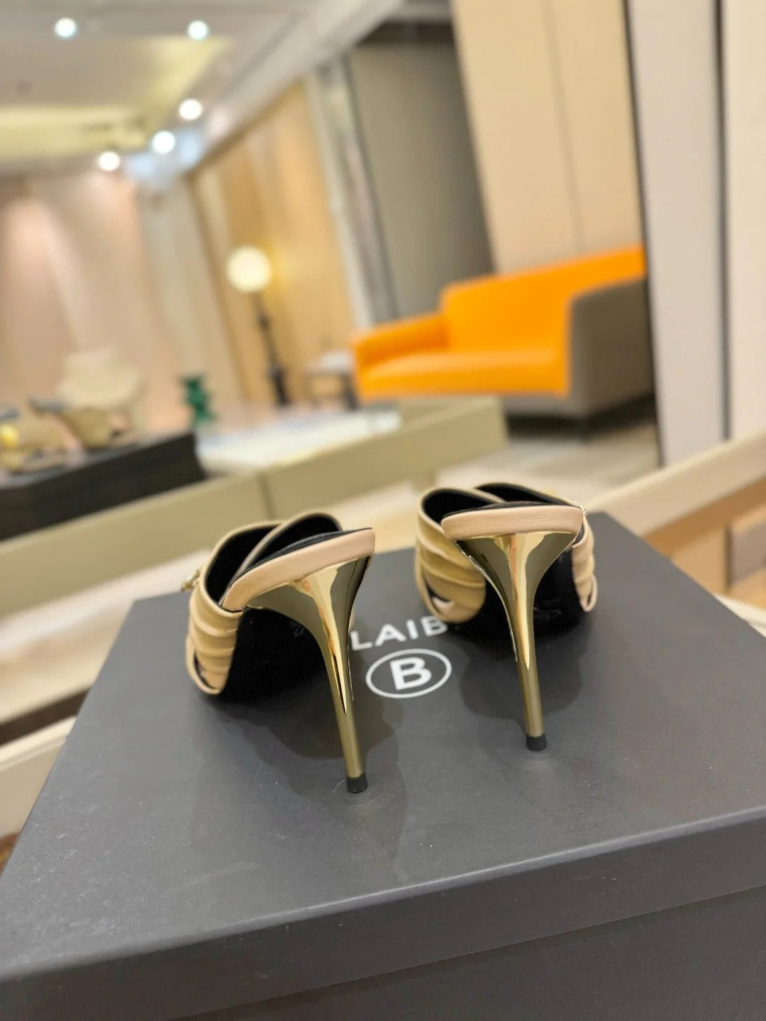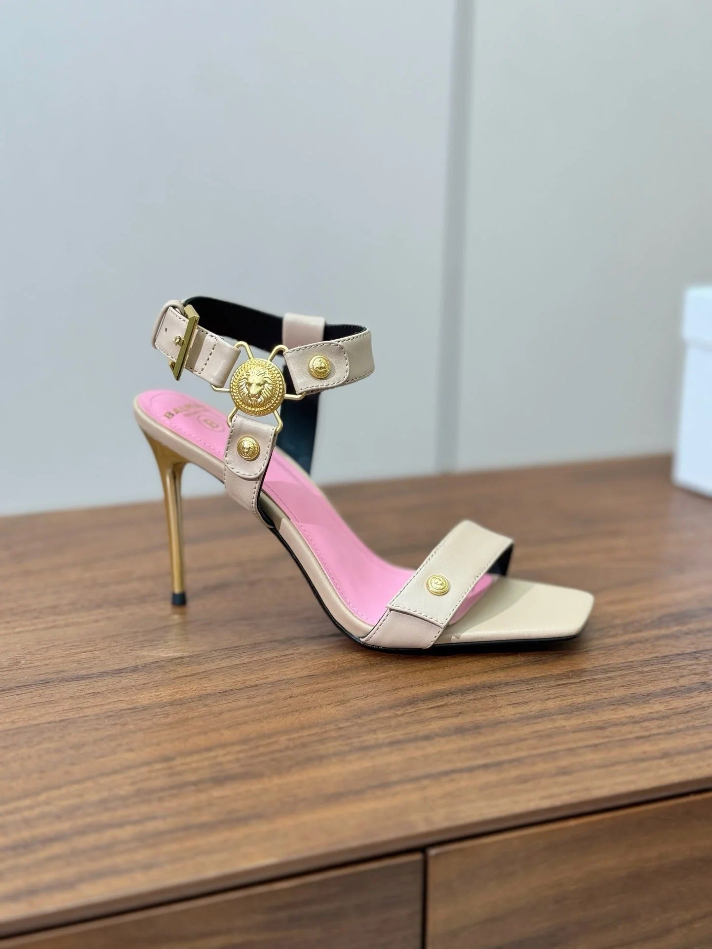 BALMAIN 25S HIGH HEEL SANDALS 95MM IN BEIGE CALFSKIN