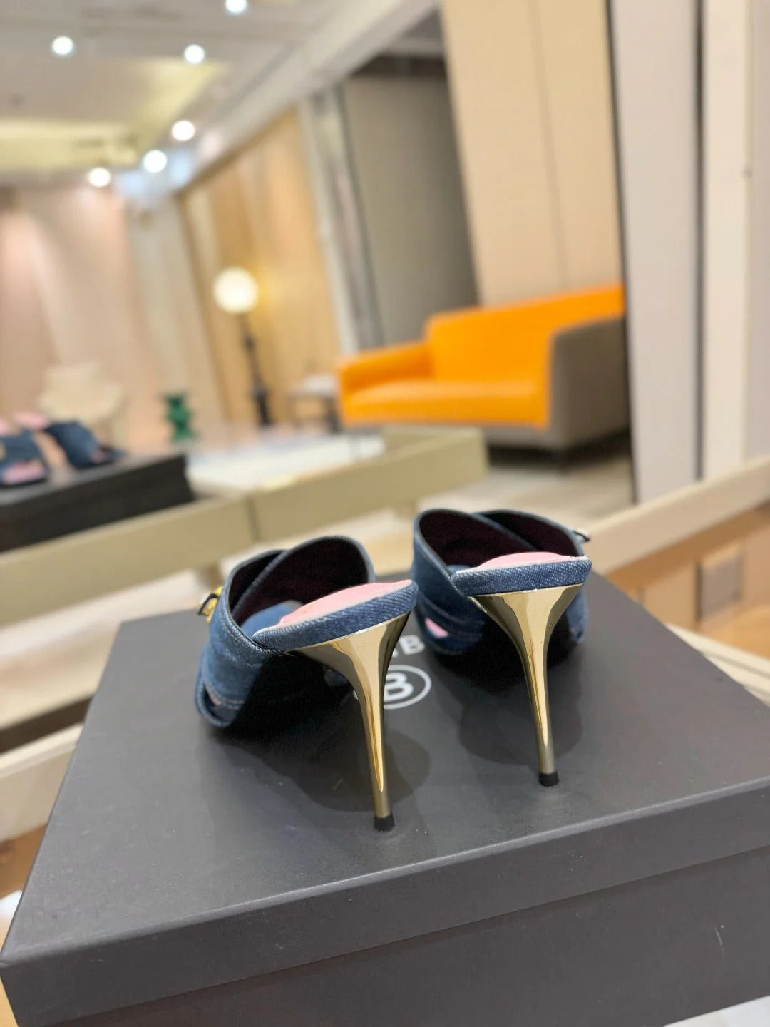 BALMAIN 25S HIGH HEEL SANDALS 95MM IN BLUE DENIM