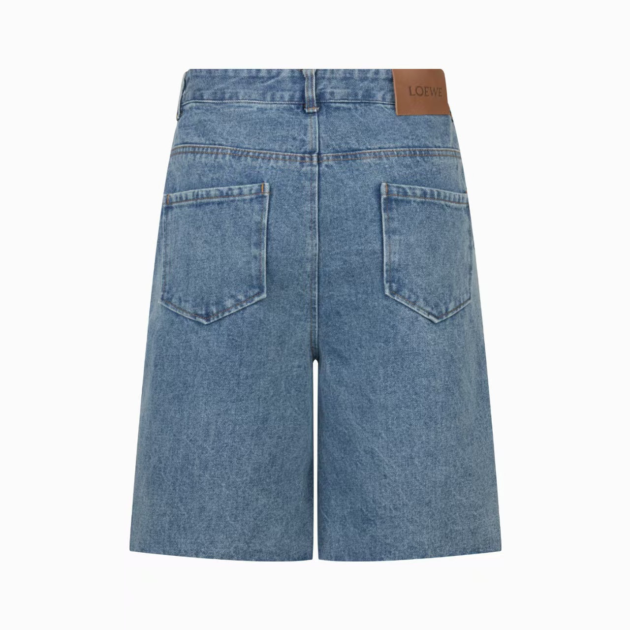 LOEWE ANAGRAM FRAYED DENIM SHORTS