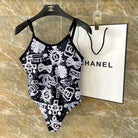 CC BIKINI SWIMSUIT SET IN BLACK AND WHITE CHARM PRINTED 581300