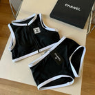 CC BIKINI SWIMSUIT SET IN BLACK AND WHITE TRIM 596500