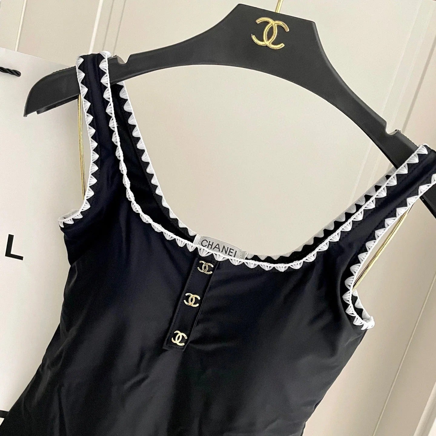 CC BIKINI SWIMSUIT SET IN BLACK AND WHITE TRIM 622173
