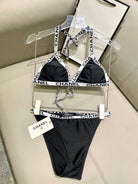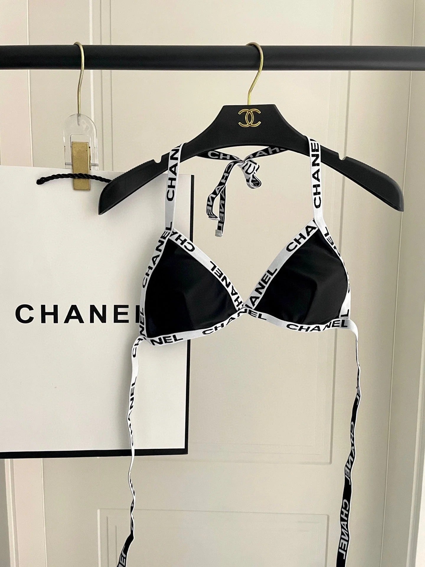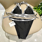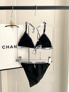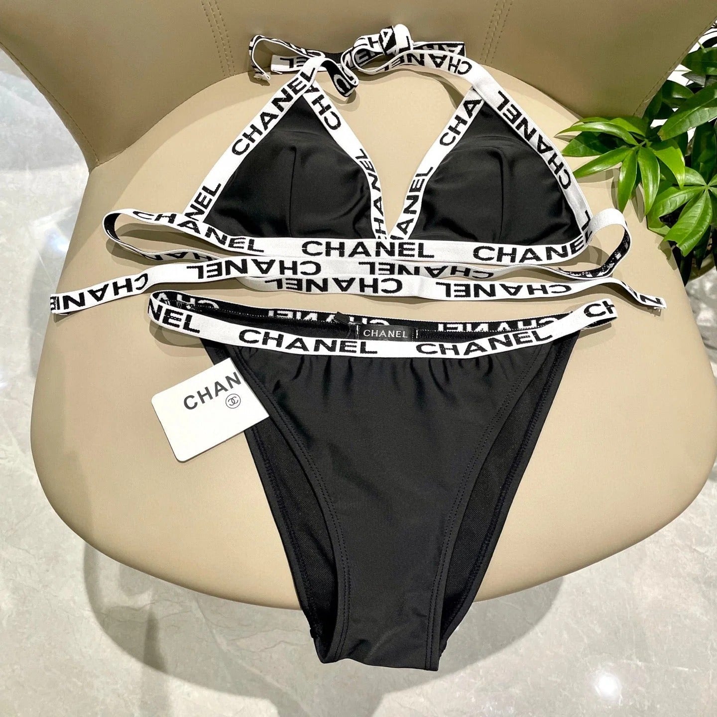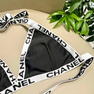 CC BIKINI SWIMSUIT SET IN BLACK WITH WHITE TRIM 627832