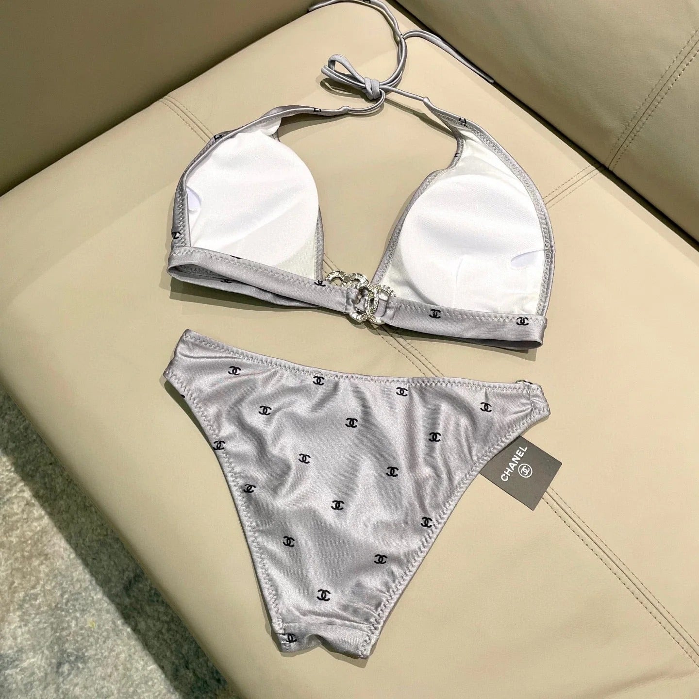 CC BIKINI SWIMSUIT SET IN GREY AND BLACK LOGO 599155