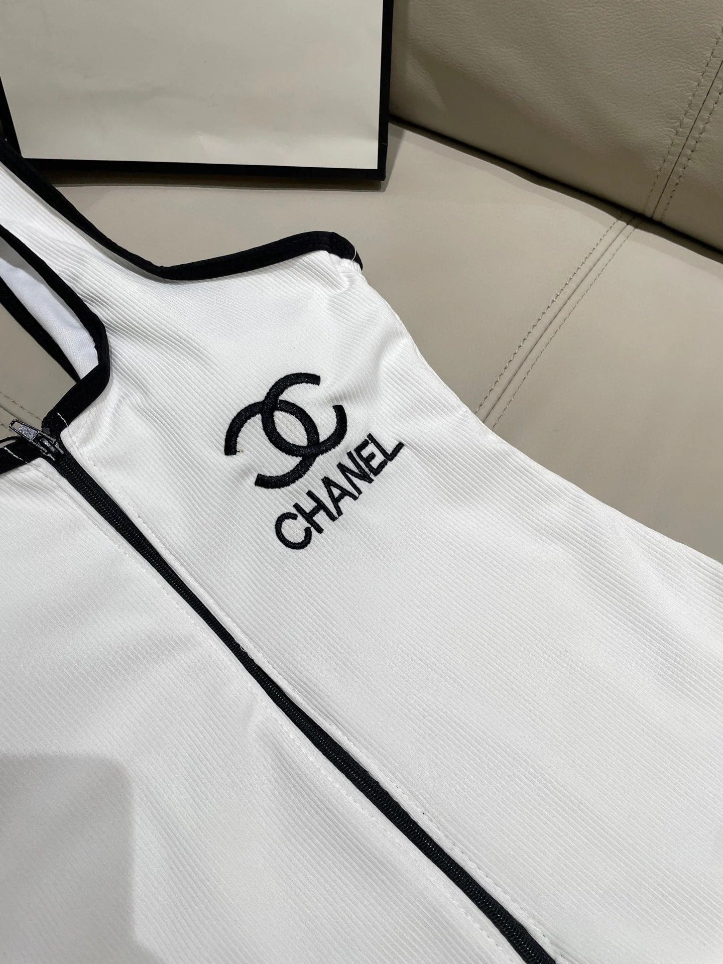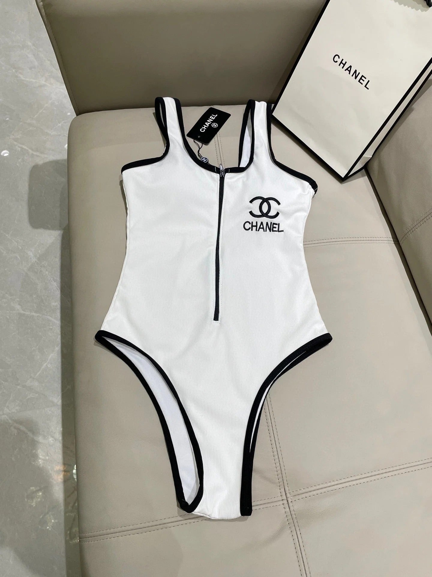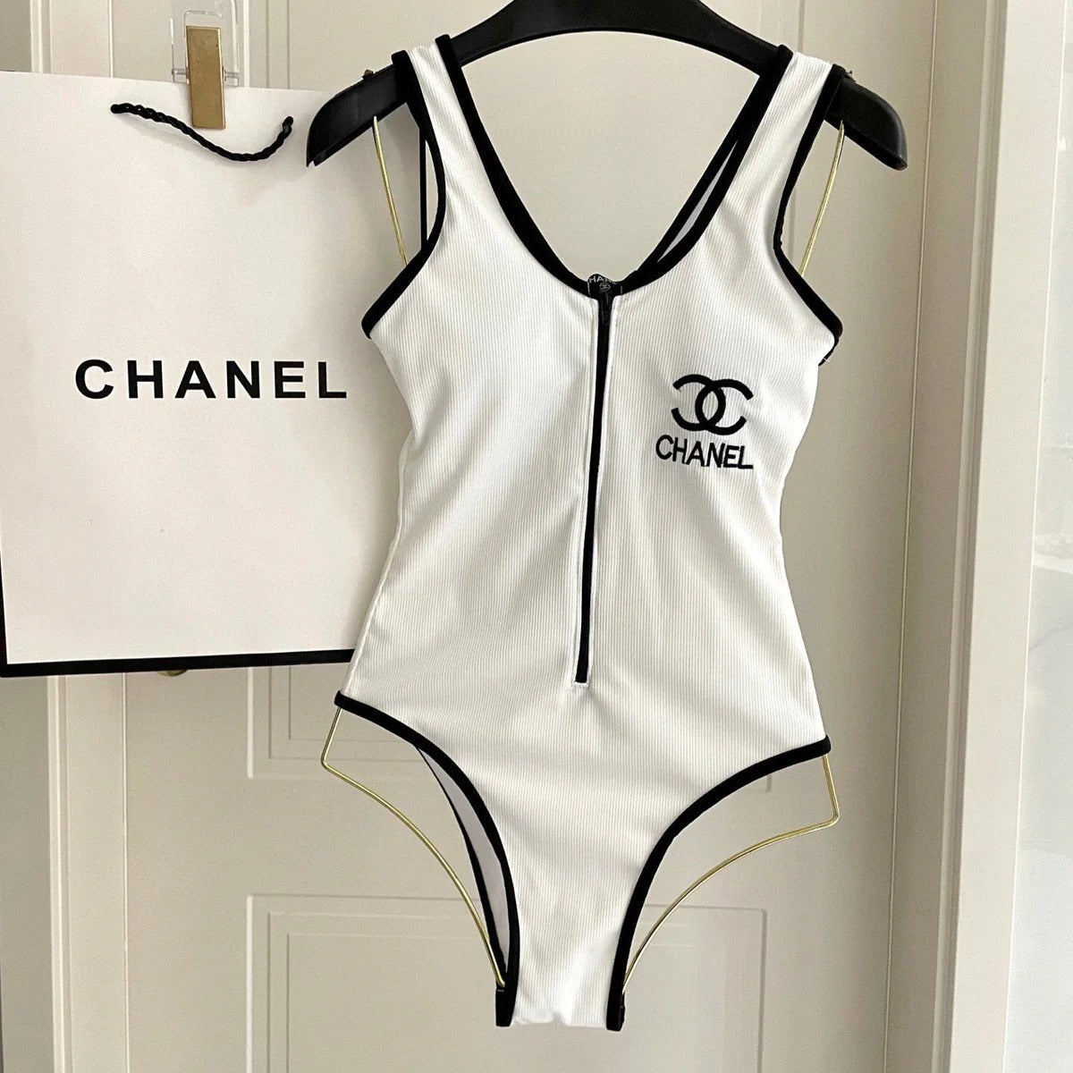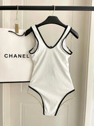 CC BIKINI SWIMSUIT SET IN WHITE AND BLACK TRIM 604254