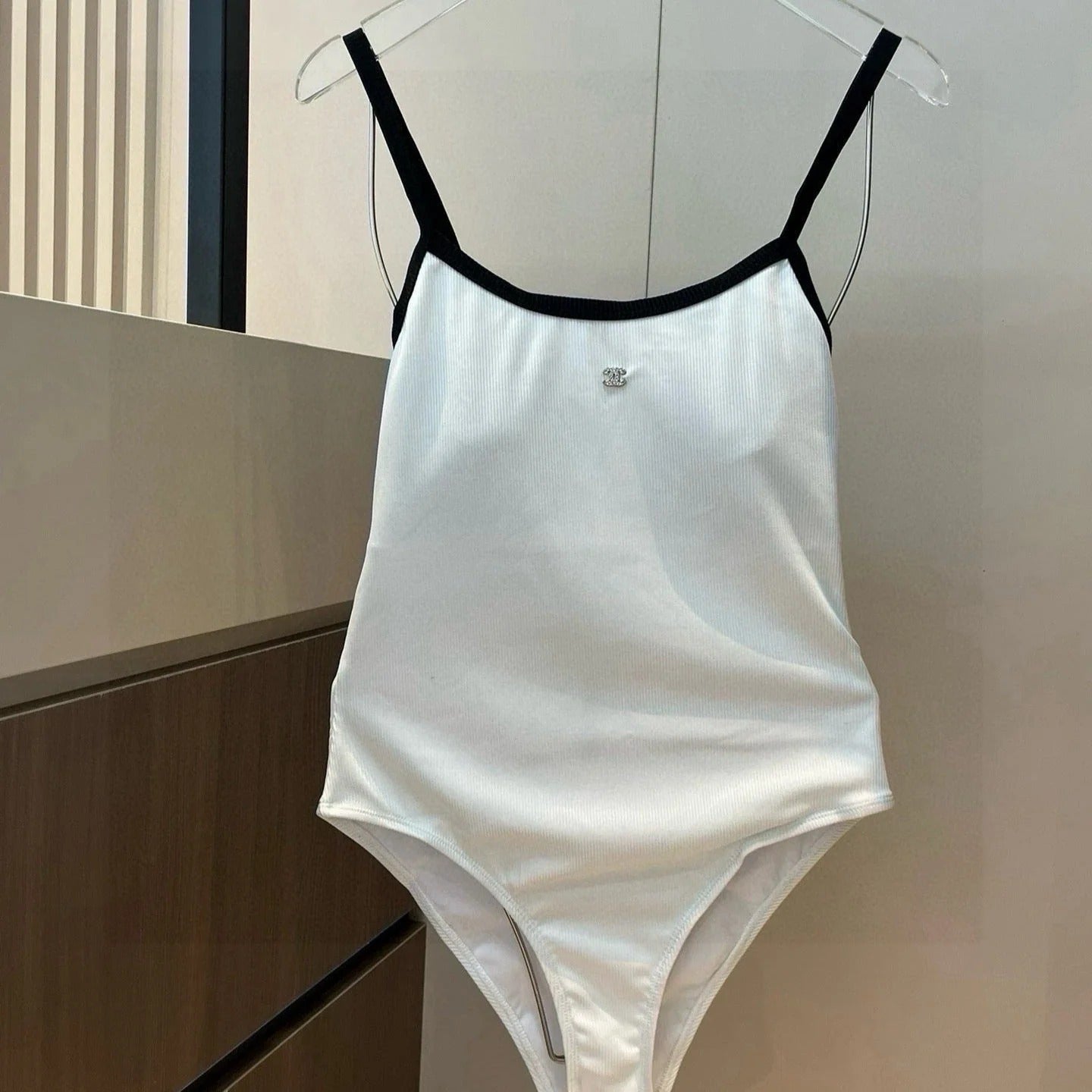 CC BIKINI SWIMSUIT SET IN WHITE AND BLACK TRIM 624530