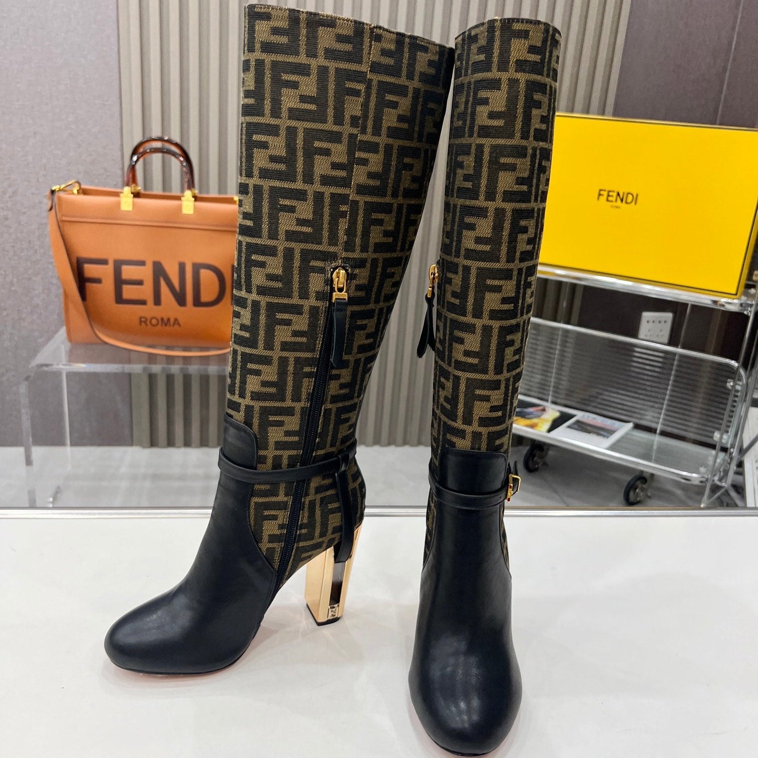 FENDI knee boots high heel monogram blue black cowhide 521217