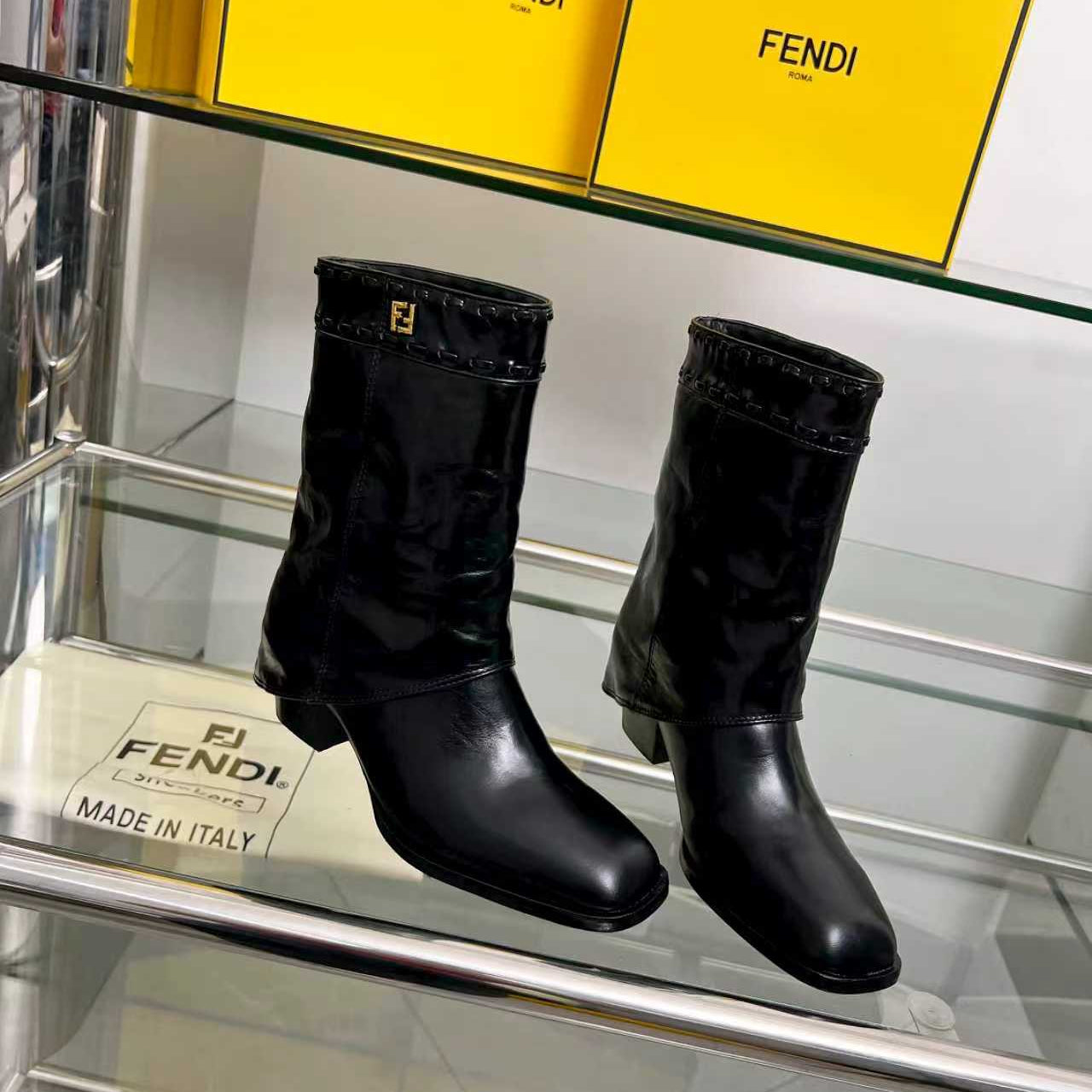 FENDI FIRST 80 MM BOOTS IN CIDER BROWN CALFSKIN WITH GOLD HARDWARE