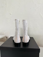 CC Boots Flower White Lace Mesh Black Grosgrain
