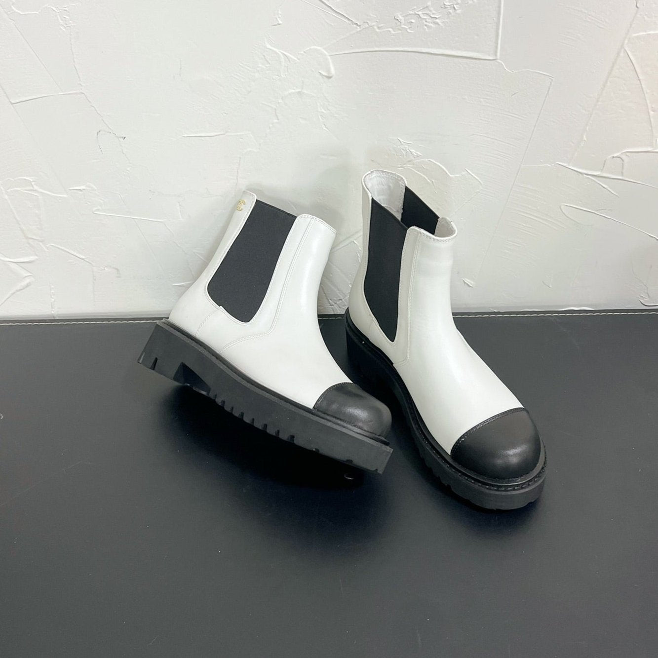 CC Chelsea Ankle Boots In White Mix Black Cowhide 949683