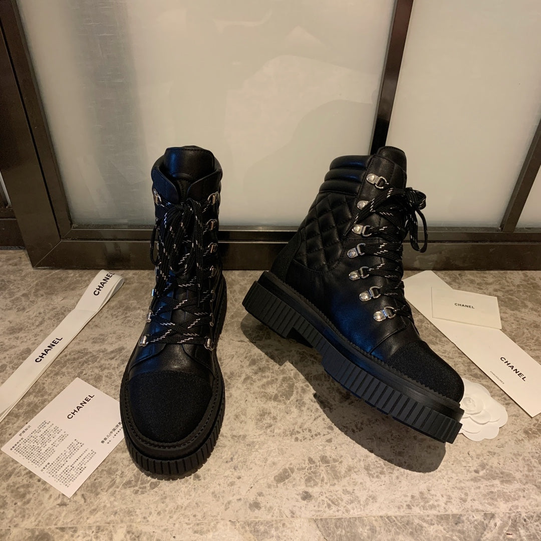CC Combat Boots 50mm In Black Calfskin Quilted And Lycra Fabric 940072