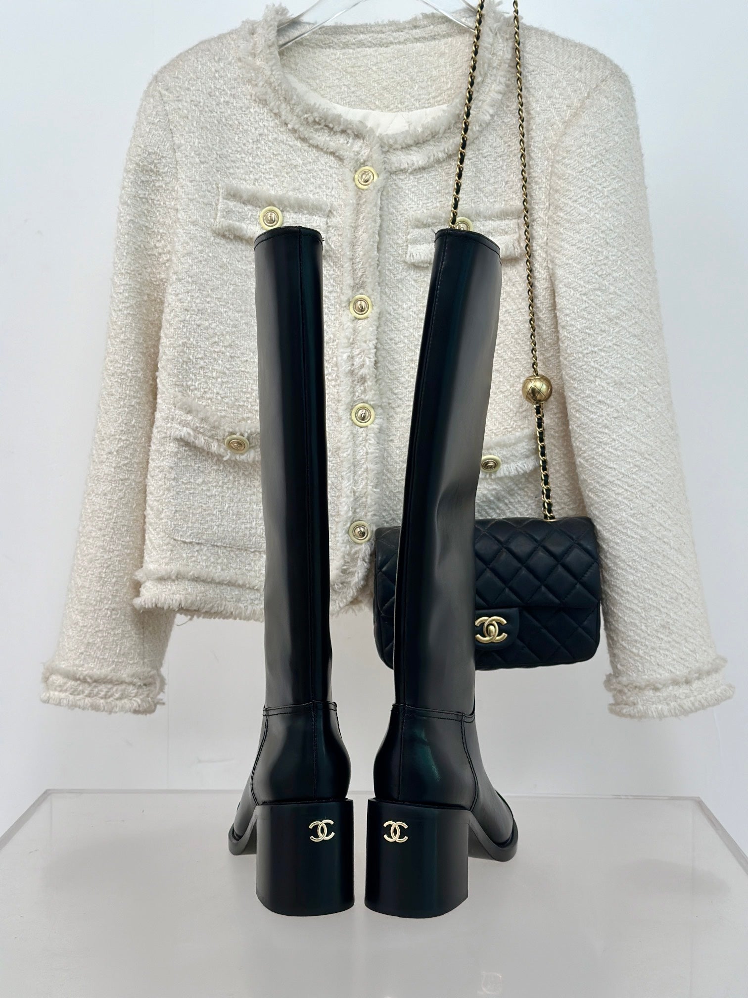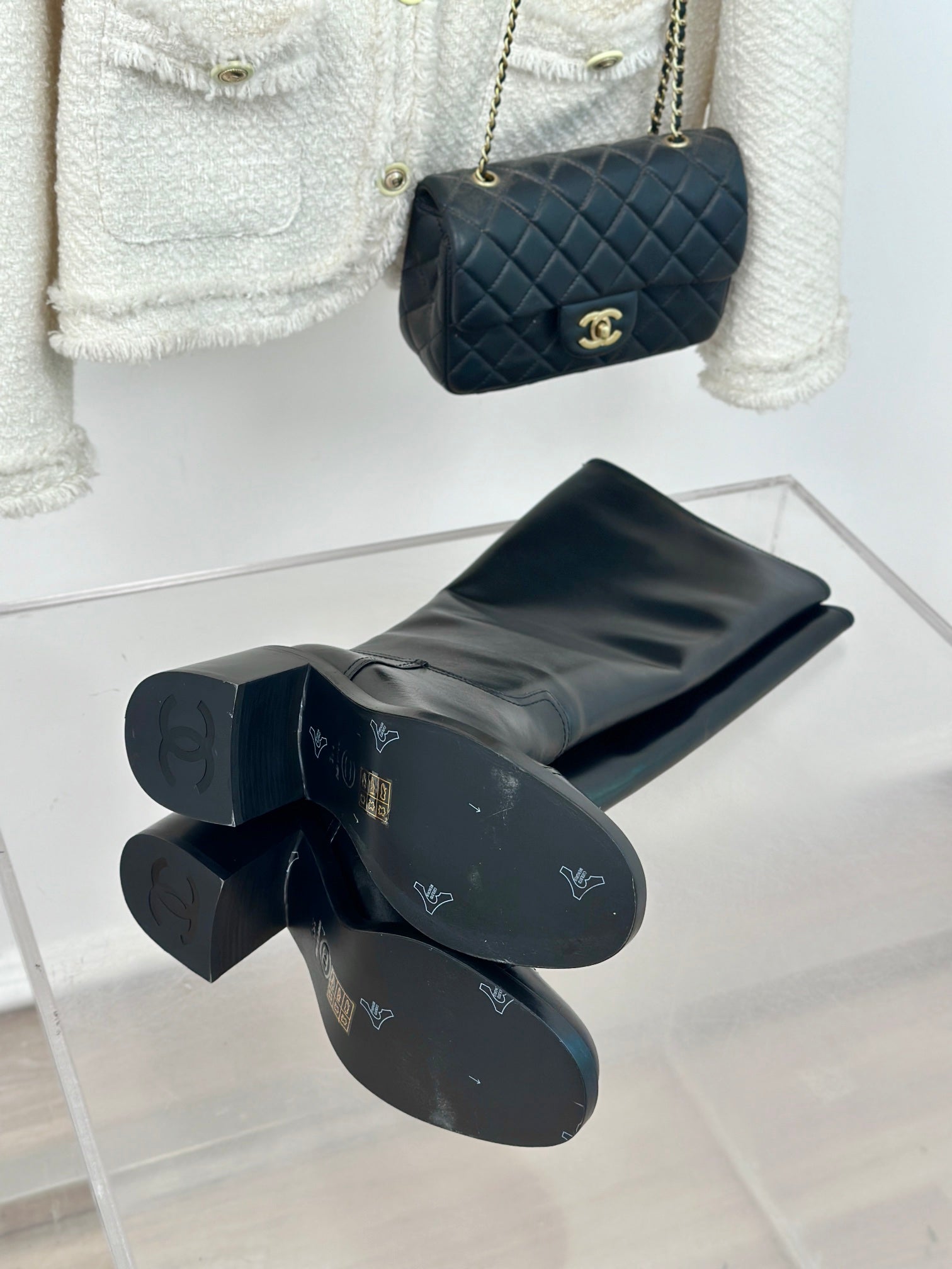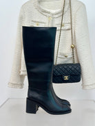 CC High Boots 70mm Plain Black Lambskin