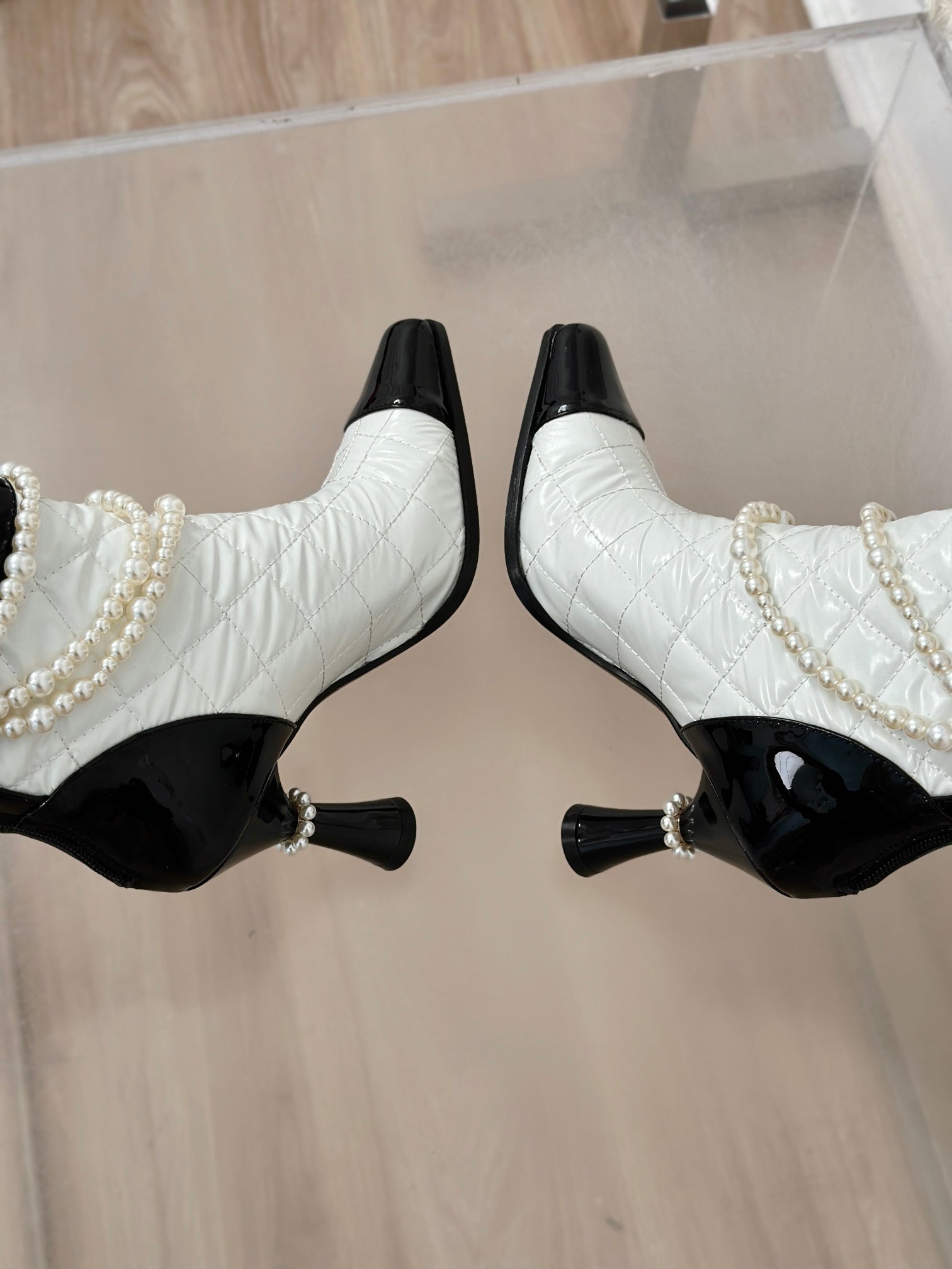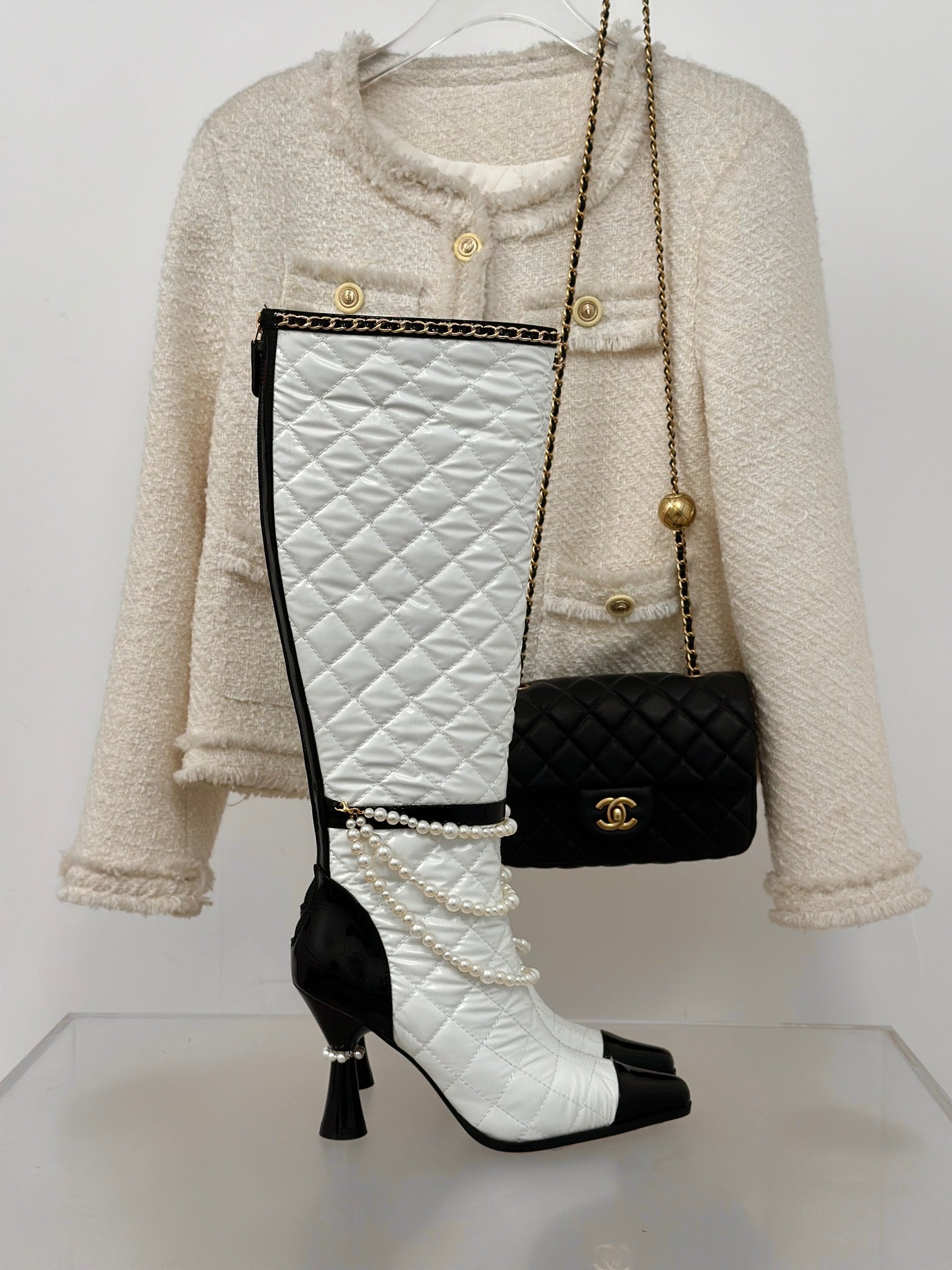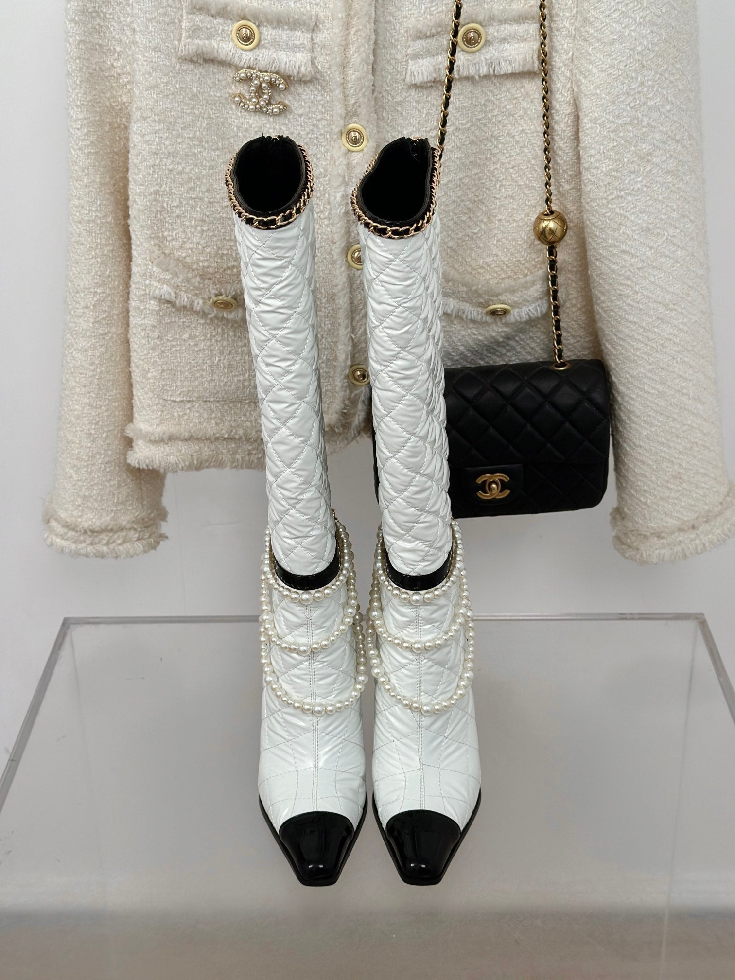CC High Boots 80mm White Wrinkled Quilted Calfskin