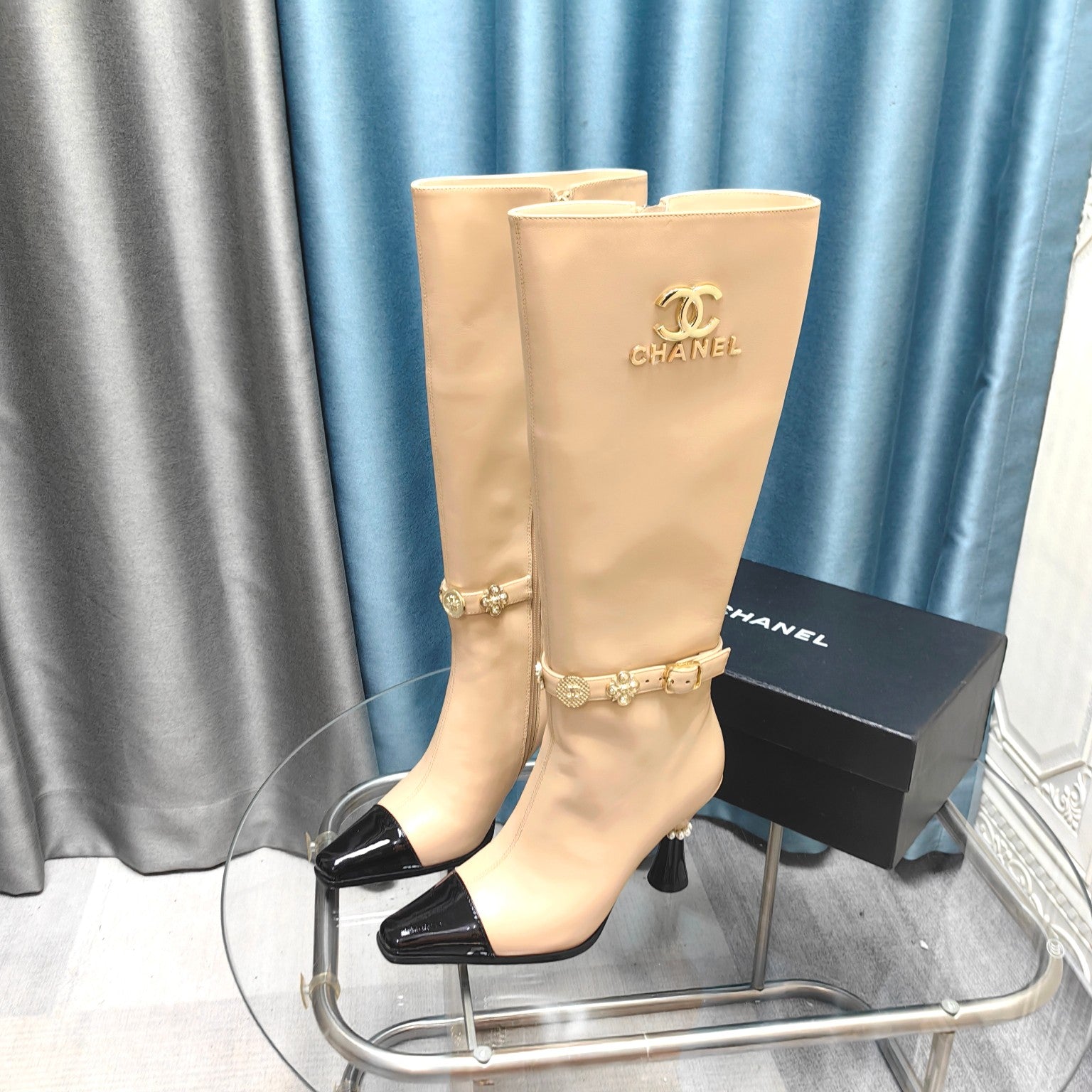 CC High Boots Beige Cowhide And Lambskin