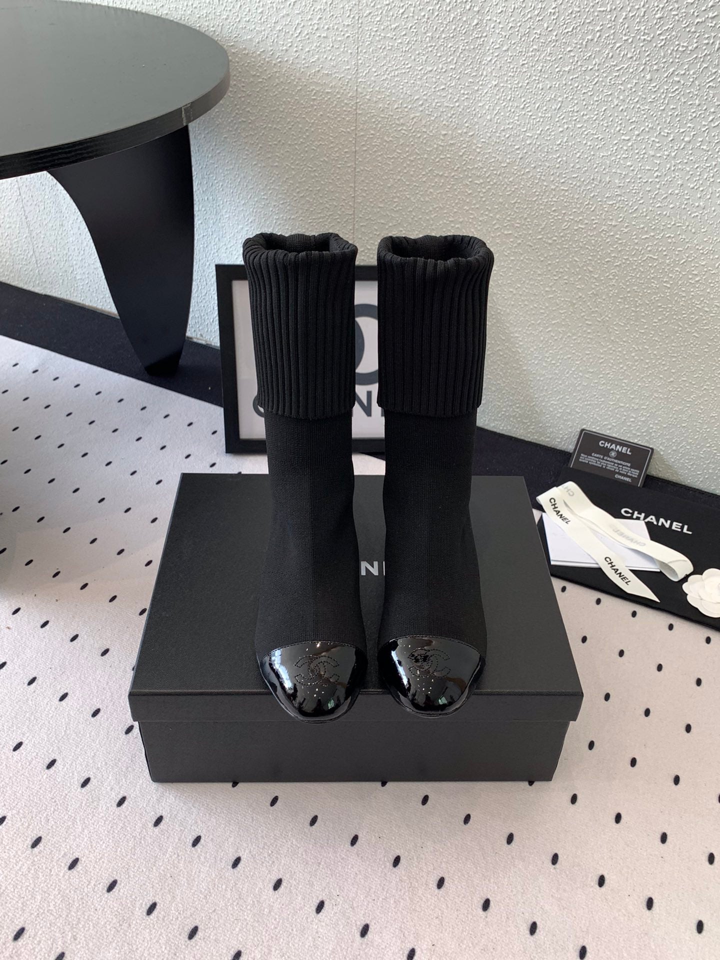 CC Short Boots 55mm Black Wool Mix Glossy Cowhide 938066