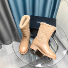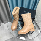 CC Short Boots Beige Suede Lining Wool And Lambskin