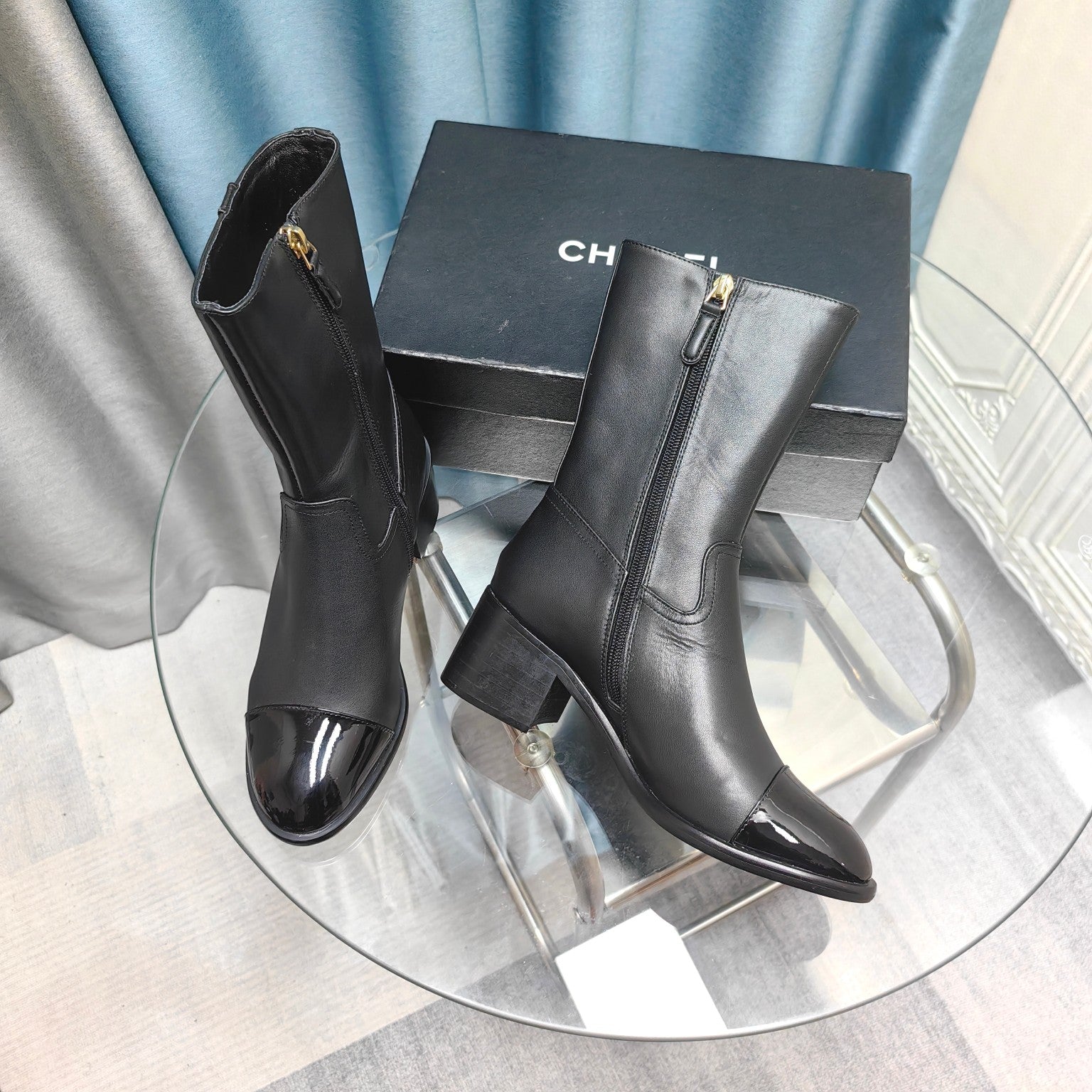 CC Short Boots Black Cowhide And Lambskin
