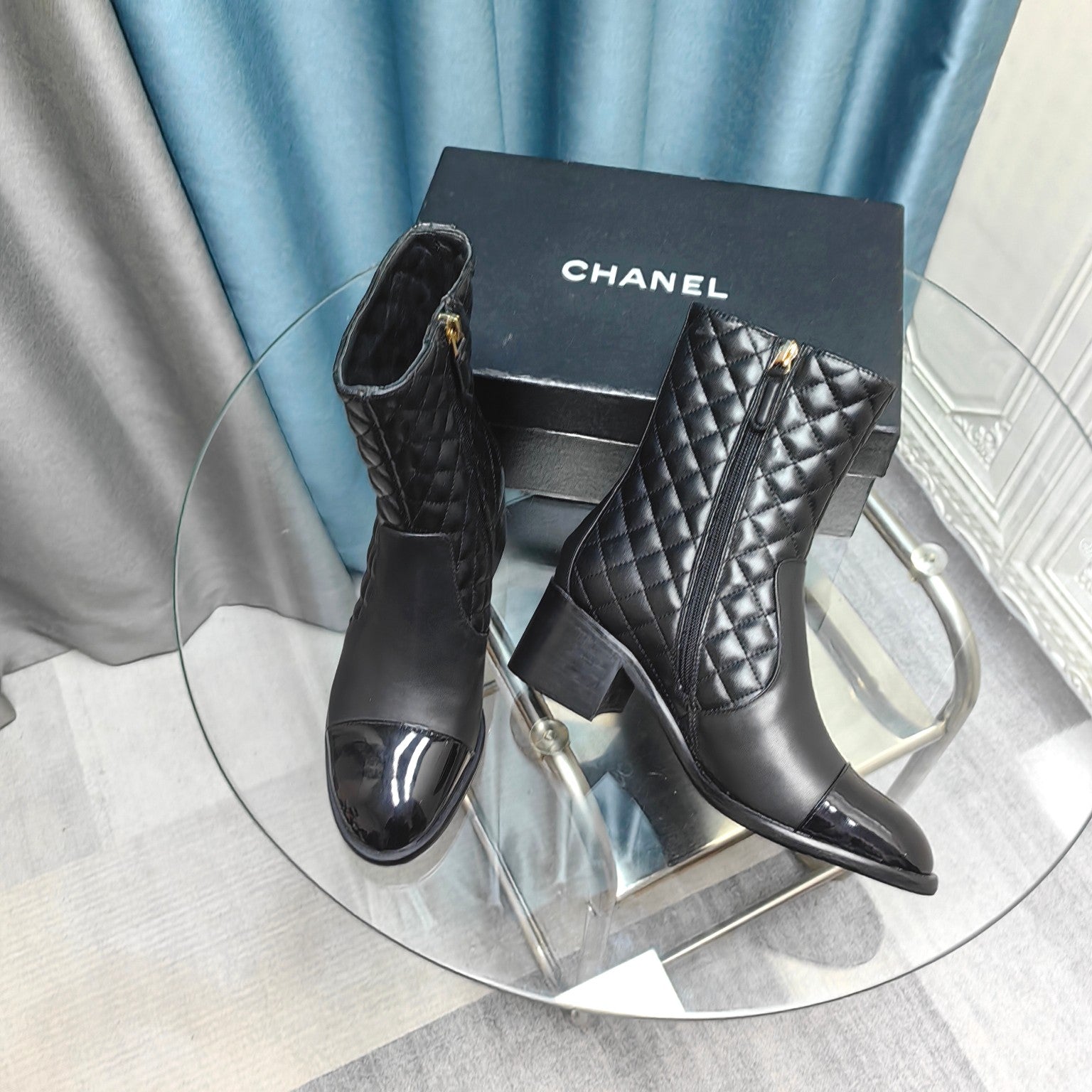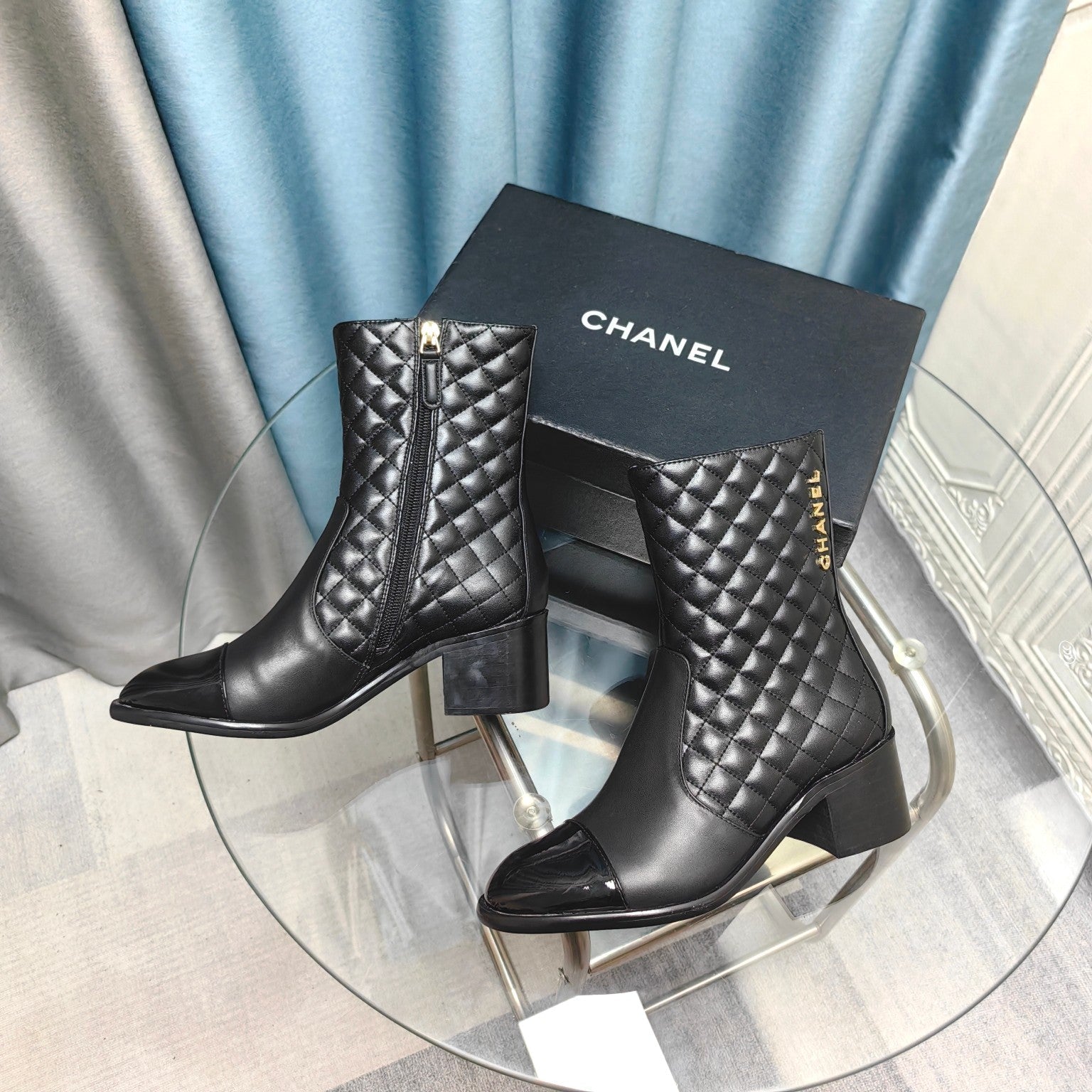CC Short Boots Black Quilted Calfskin And Lambskin