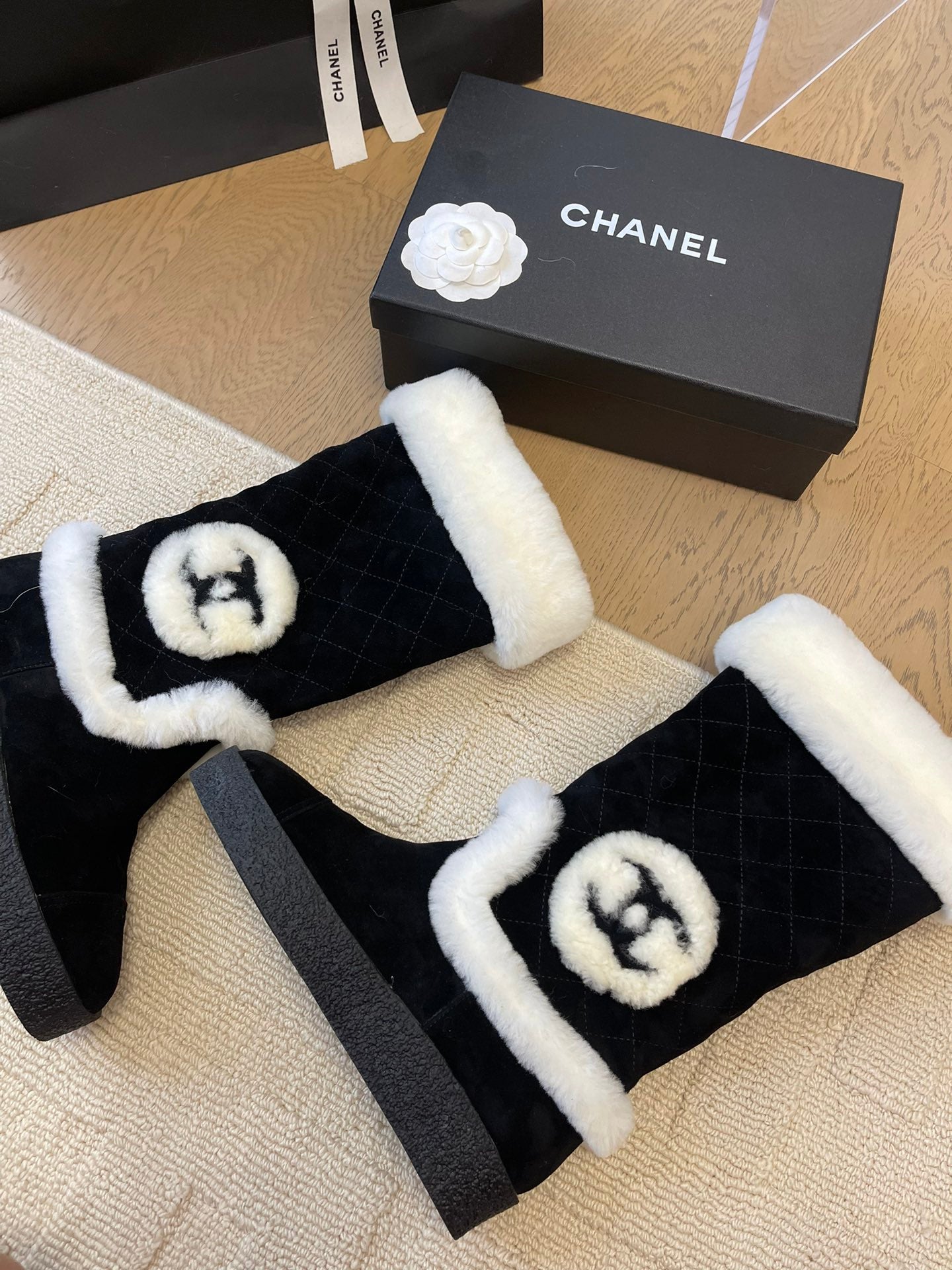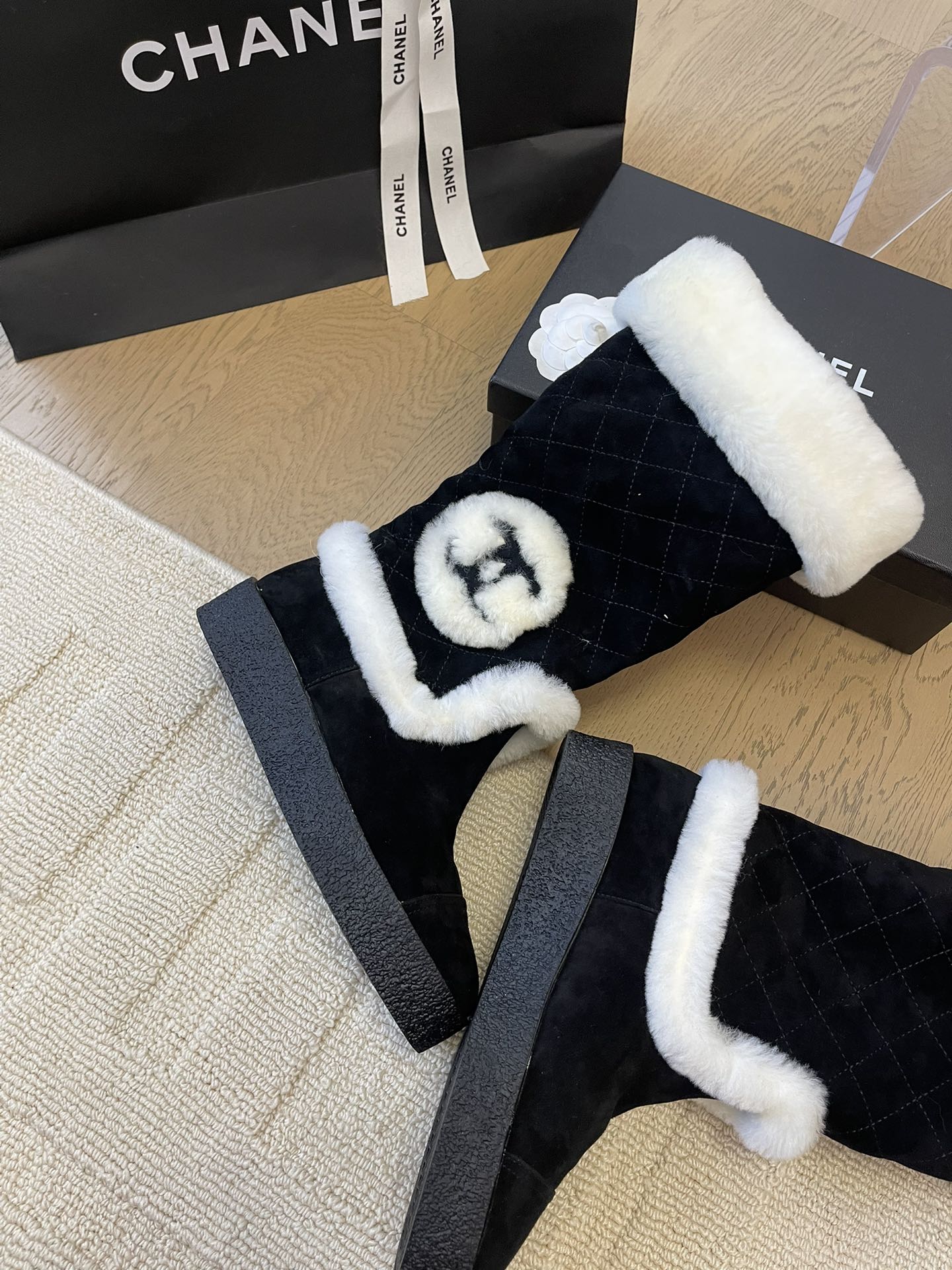 HIGH BOOTS IN BLACK SUEDE AND FLEECE LINING