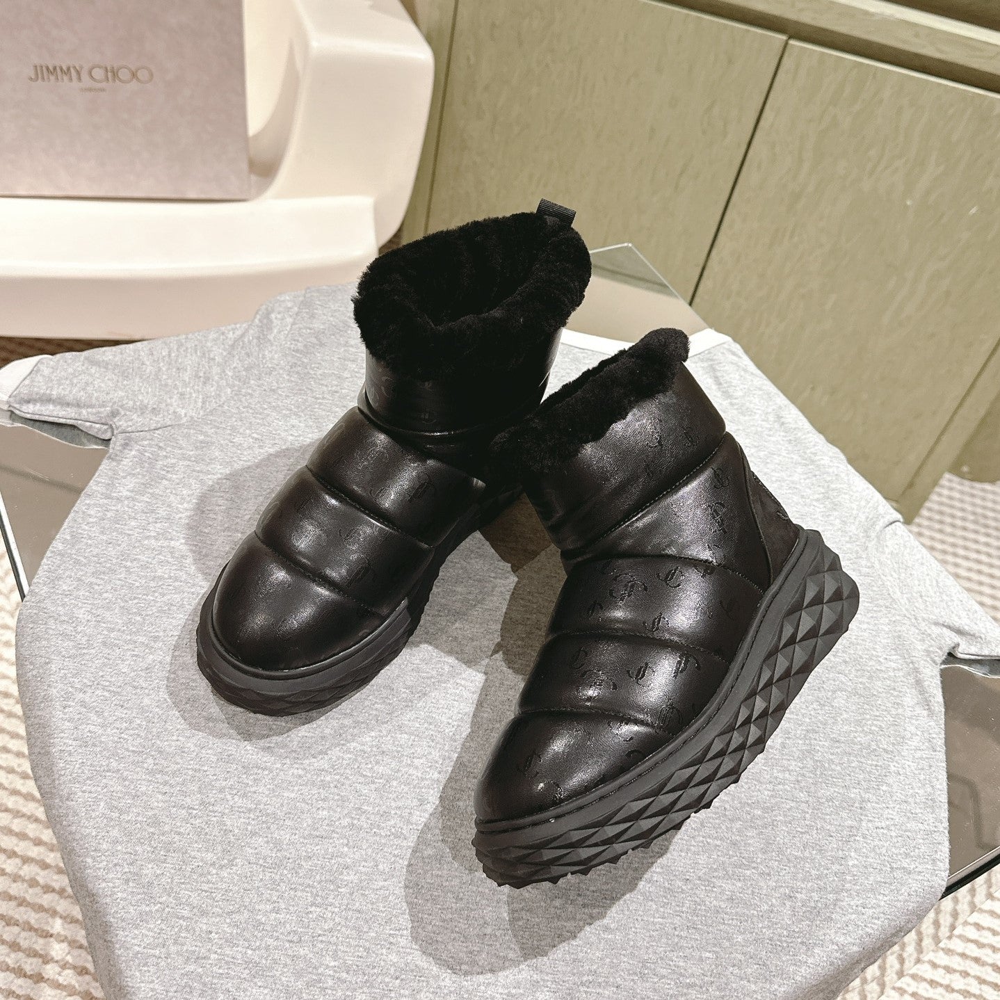 Jimmy Xan Toffee Ankle Boots Black Shearling Leather 533013