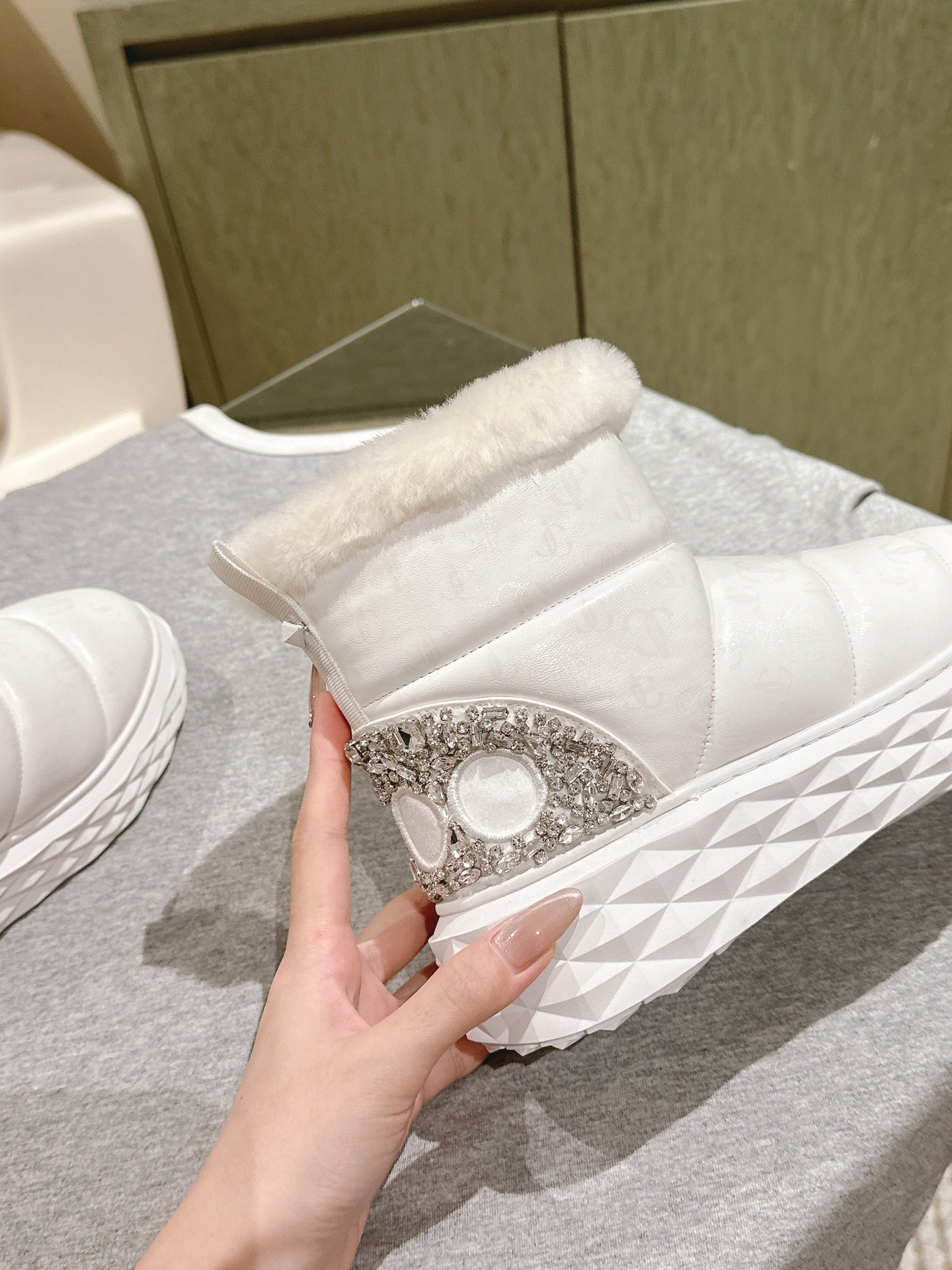 Jimmy Xan Toffee Ankle Boots with Crystals White Shearling Leather 533014