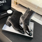 SHORT BOOTS IN DOLPHIN GRAY VELVET AND BLACK LAMBSKIN