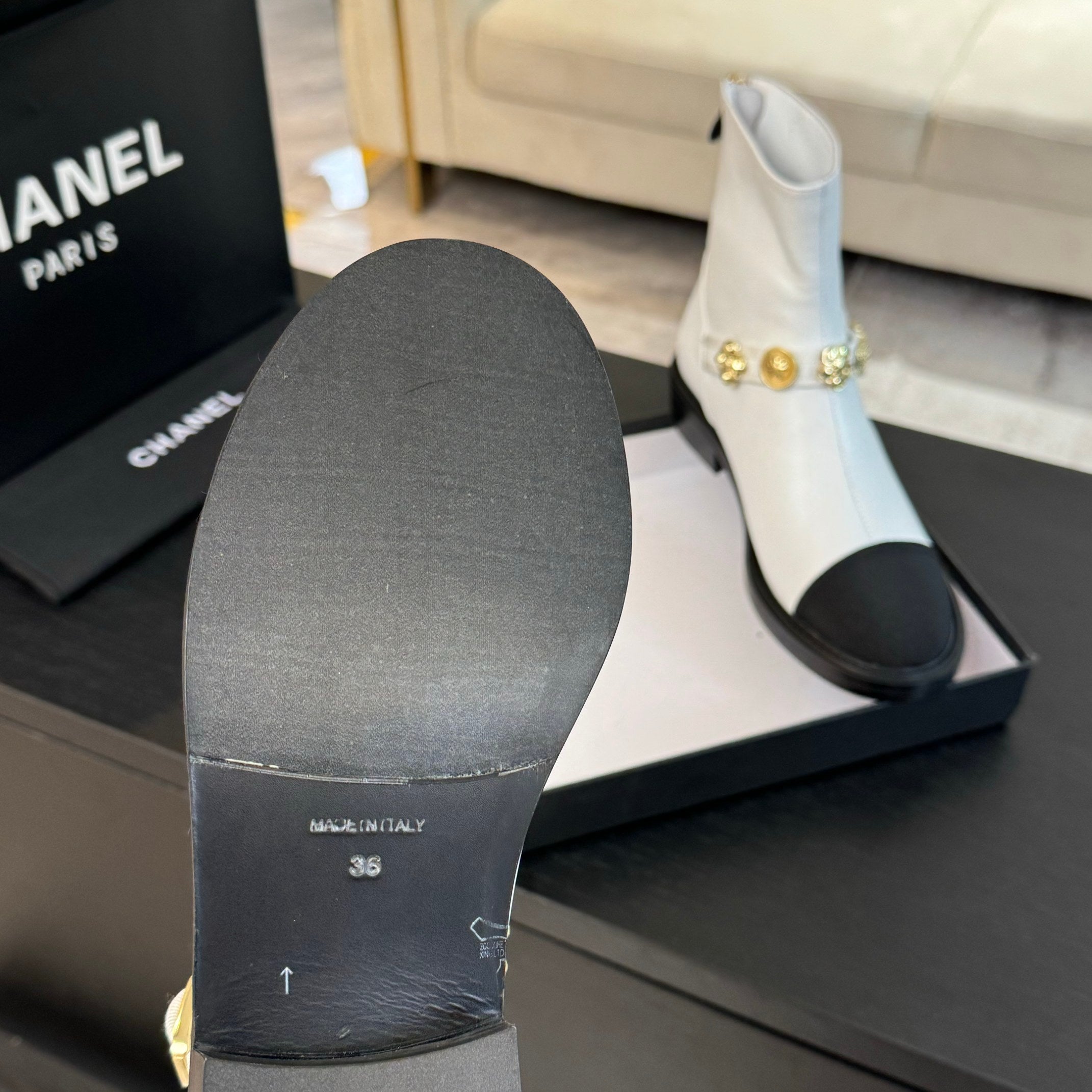 CC Short boots Black Cowhide Mix Tweed Fabric
