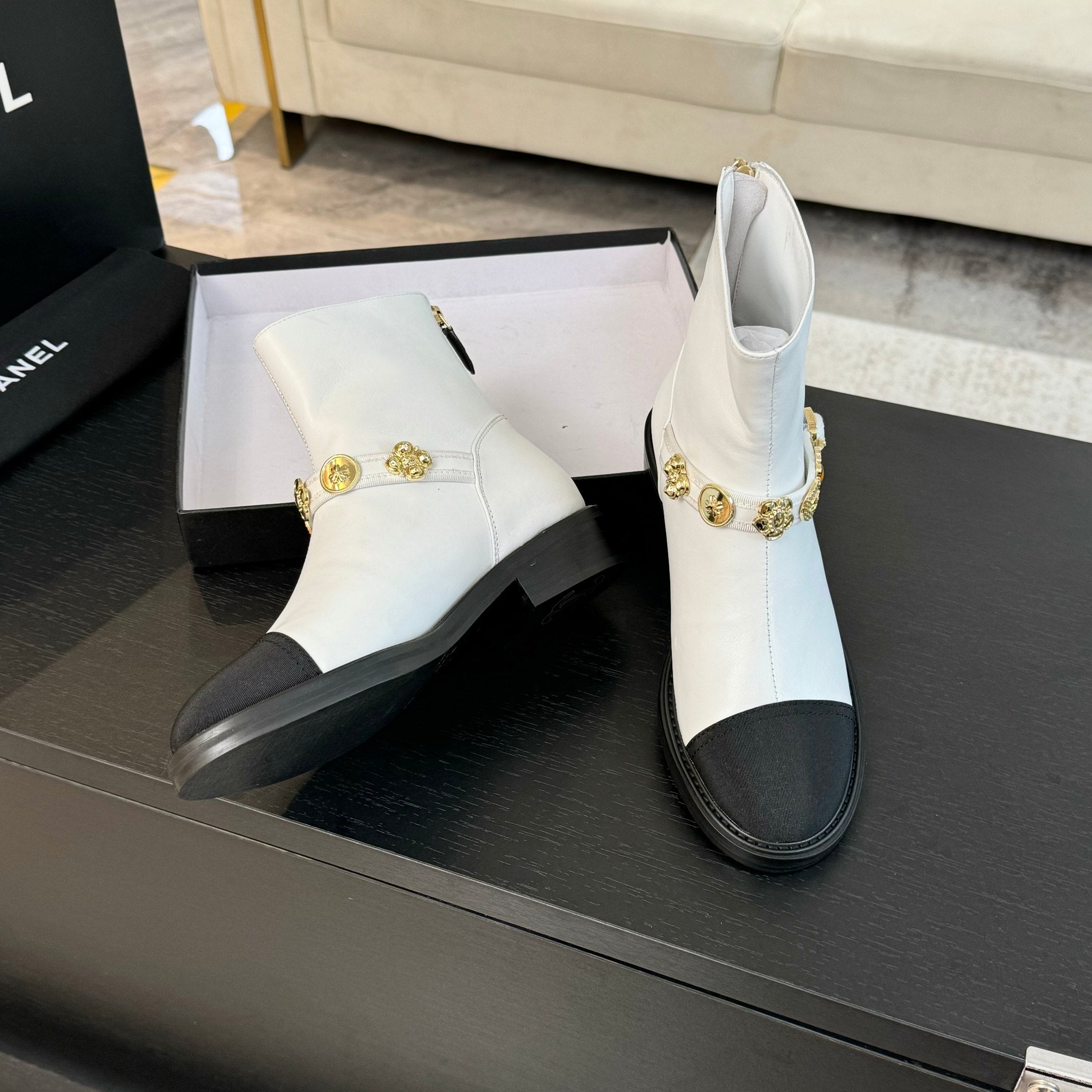 SHORT BOOTS IN WHITE MIX BLACK SHEEPSKIN