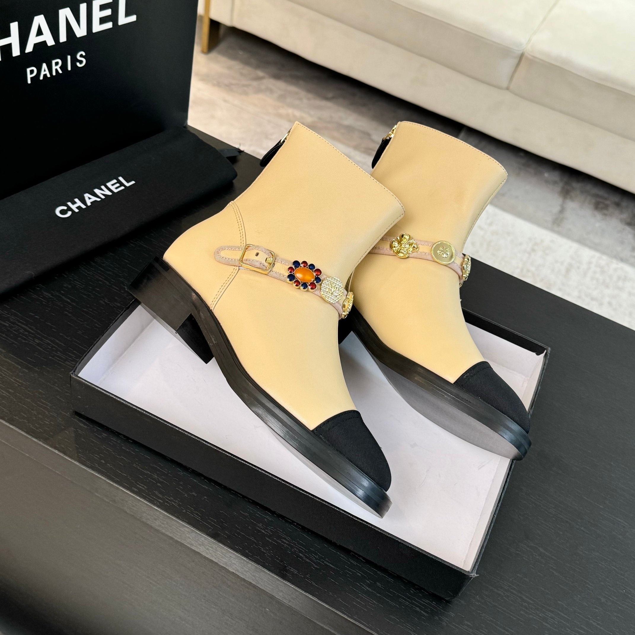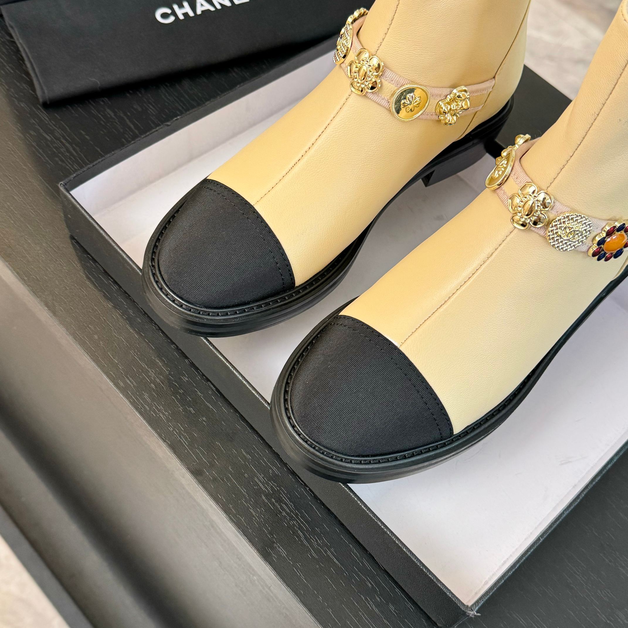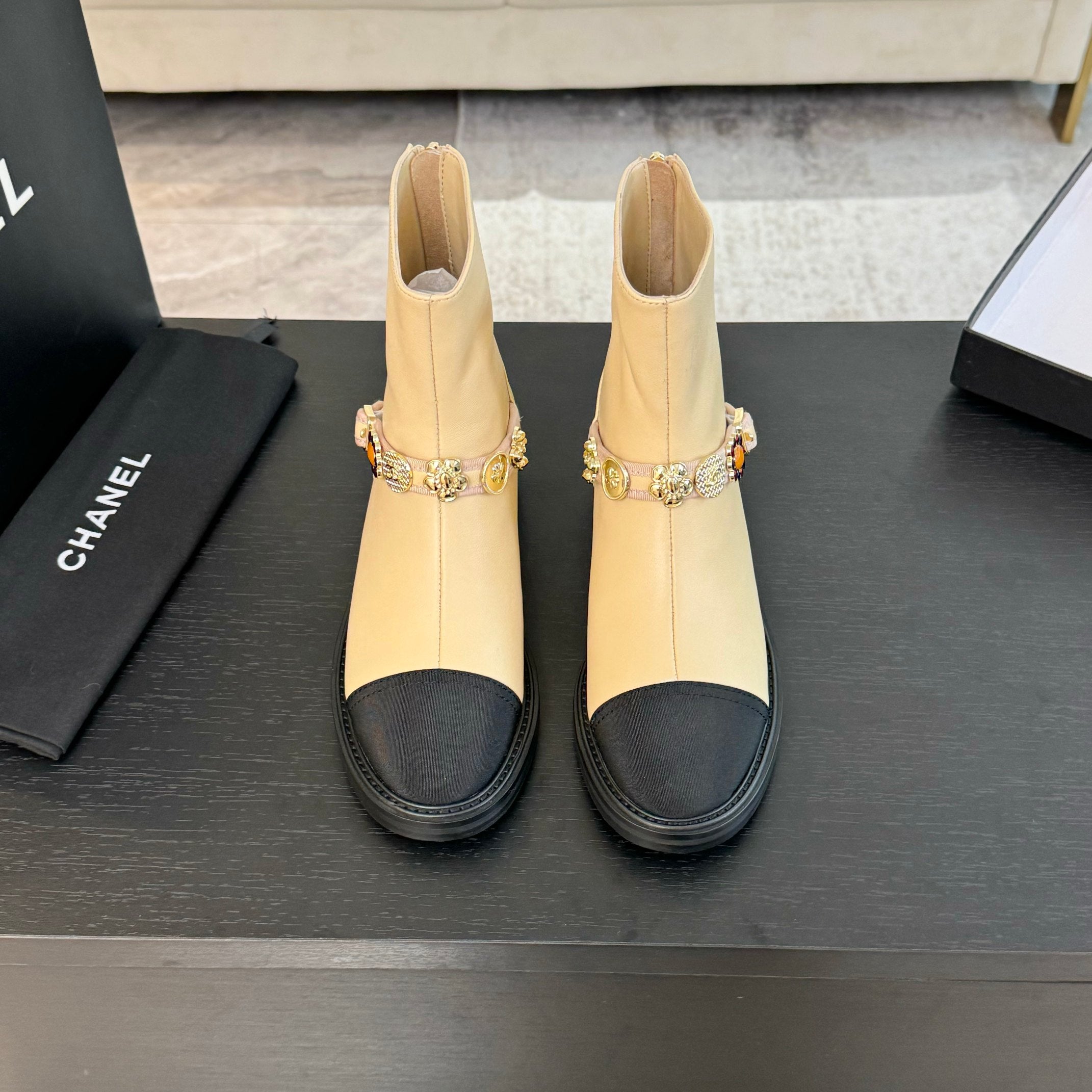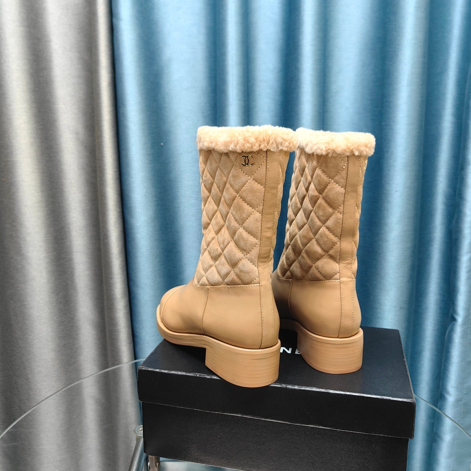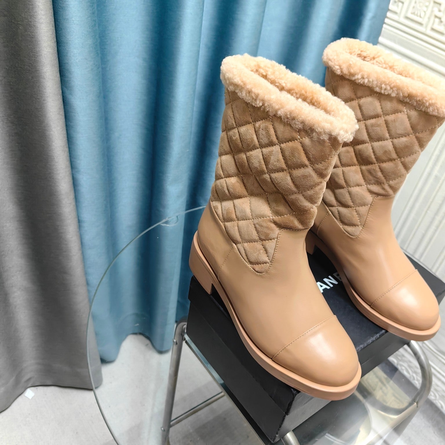 CC Short Boots Beige Suede Lining Wool And Lambskin